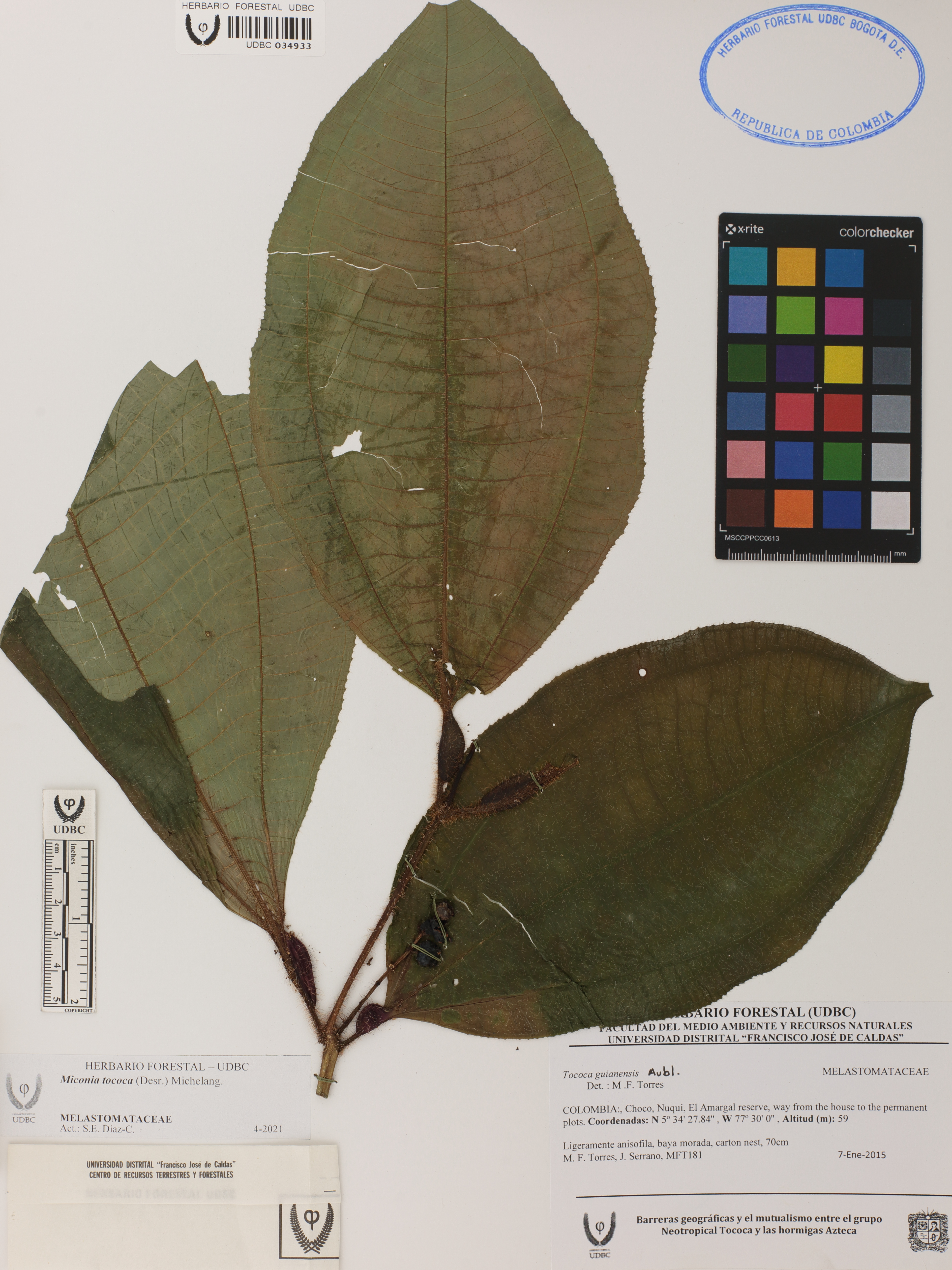| dc.description | Fotografía del ejemplar Torres, M. 181, determinado como Miconia tococa en el año 2016 | |