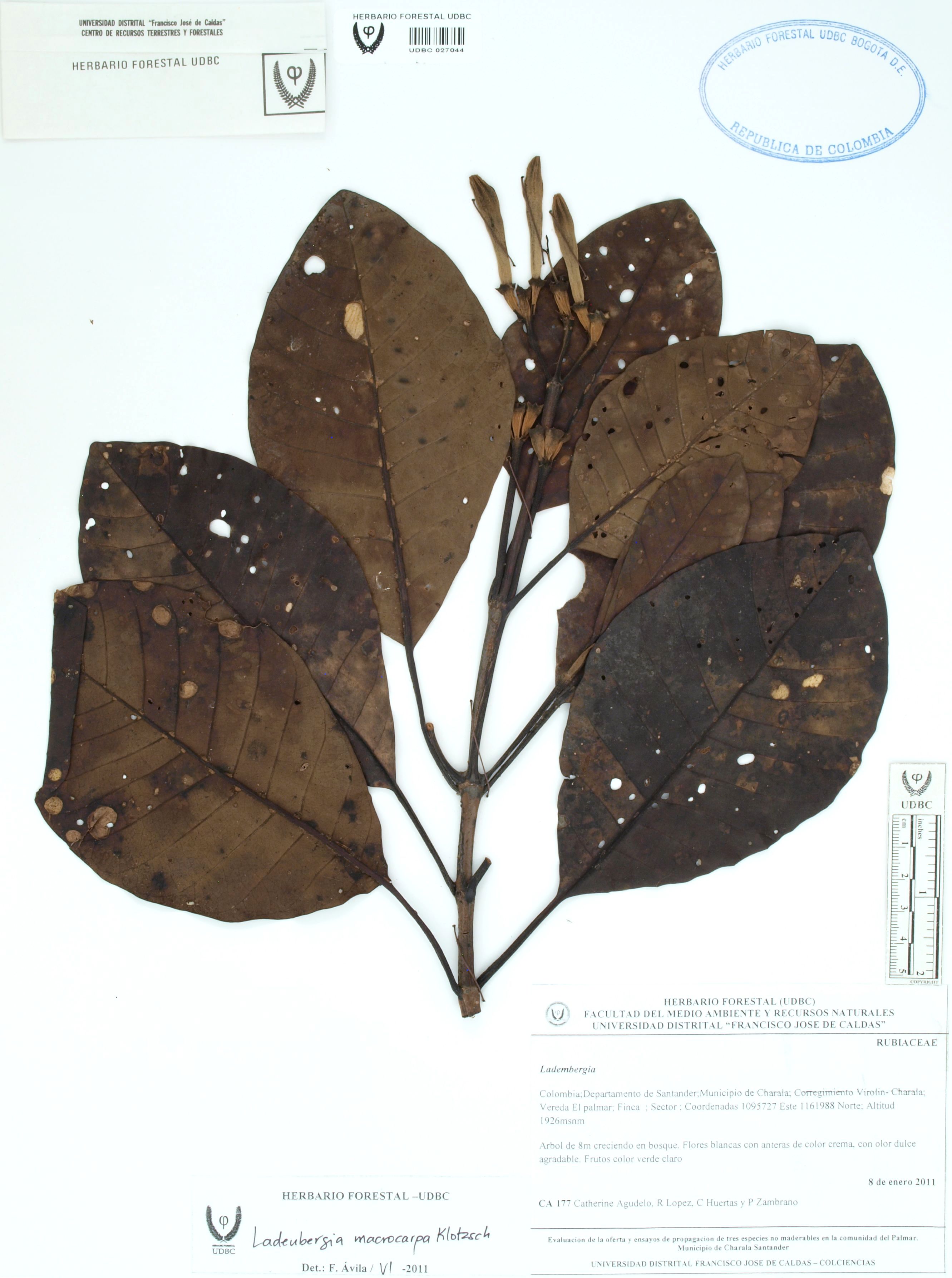 Fotografía del ejemplar Agudelo, C. 177, determinado como Ladenbergia macrocarpa en el año 2011
