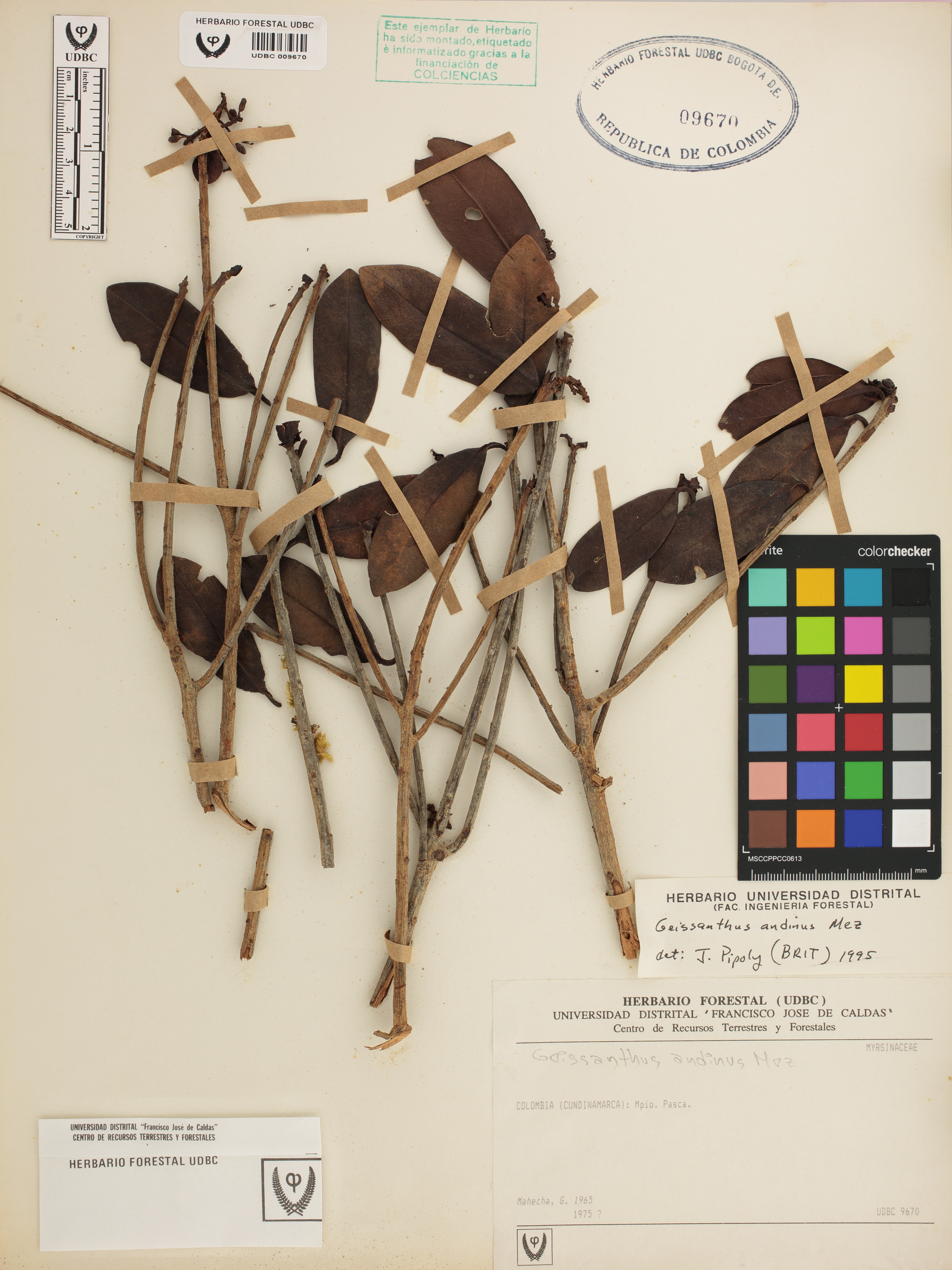 Fotografía del ejemplar Mahecha, G. 1965, determinado como Geissanthus andinus en el año 1995