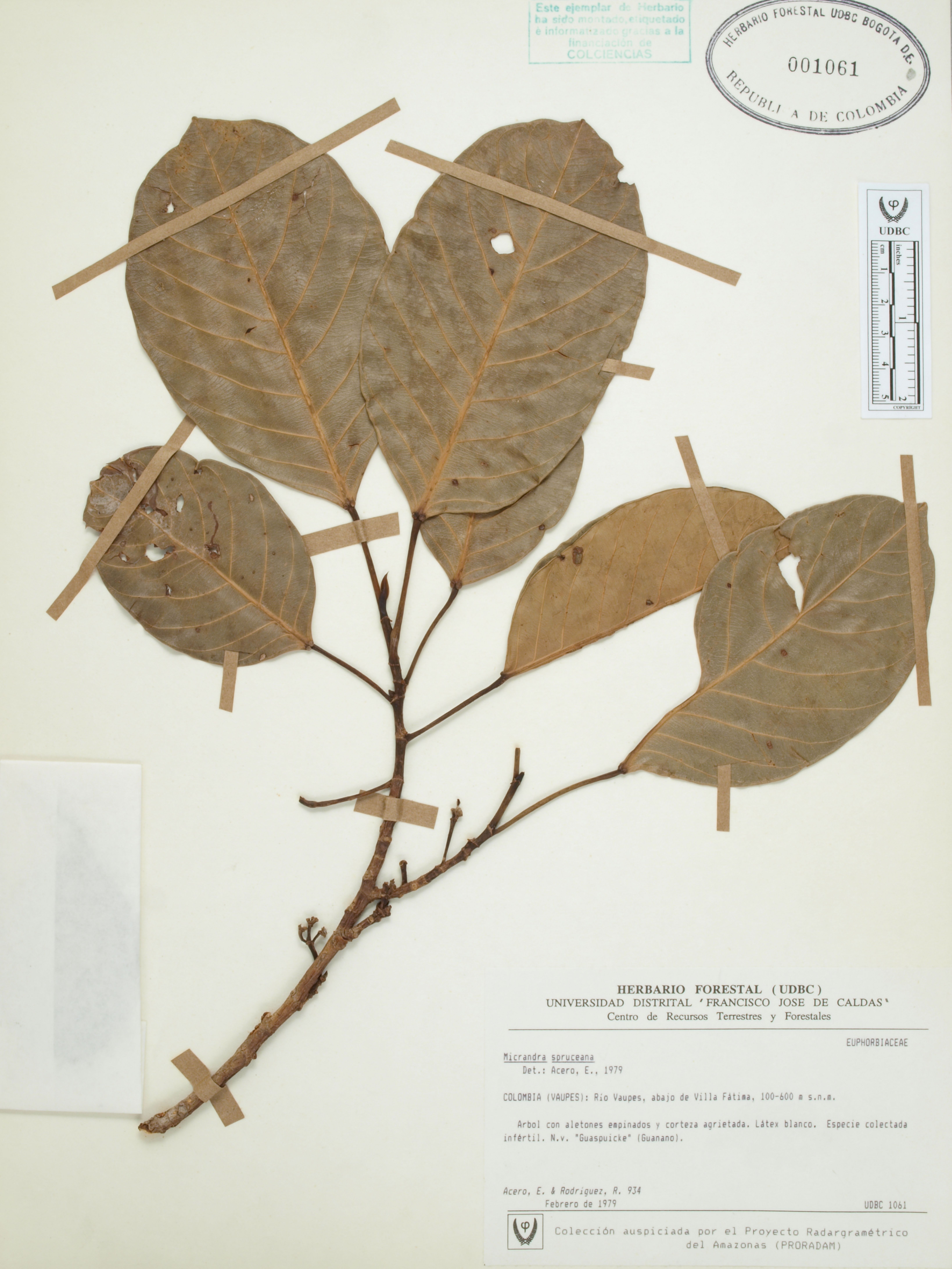 | dc.description | Fotografía del ejemplar Acero, E. 934, determinado como Micrandra spruceana en el año 1979 | |