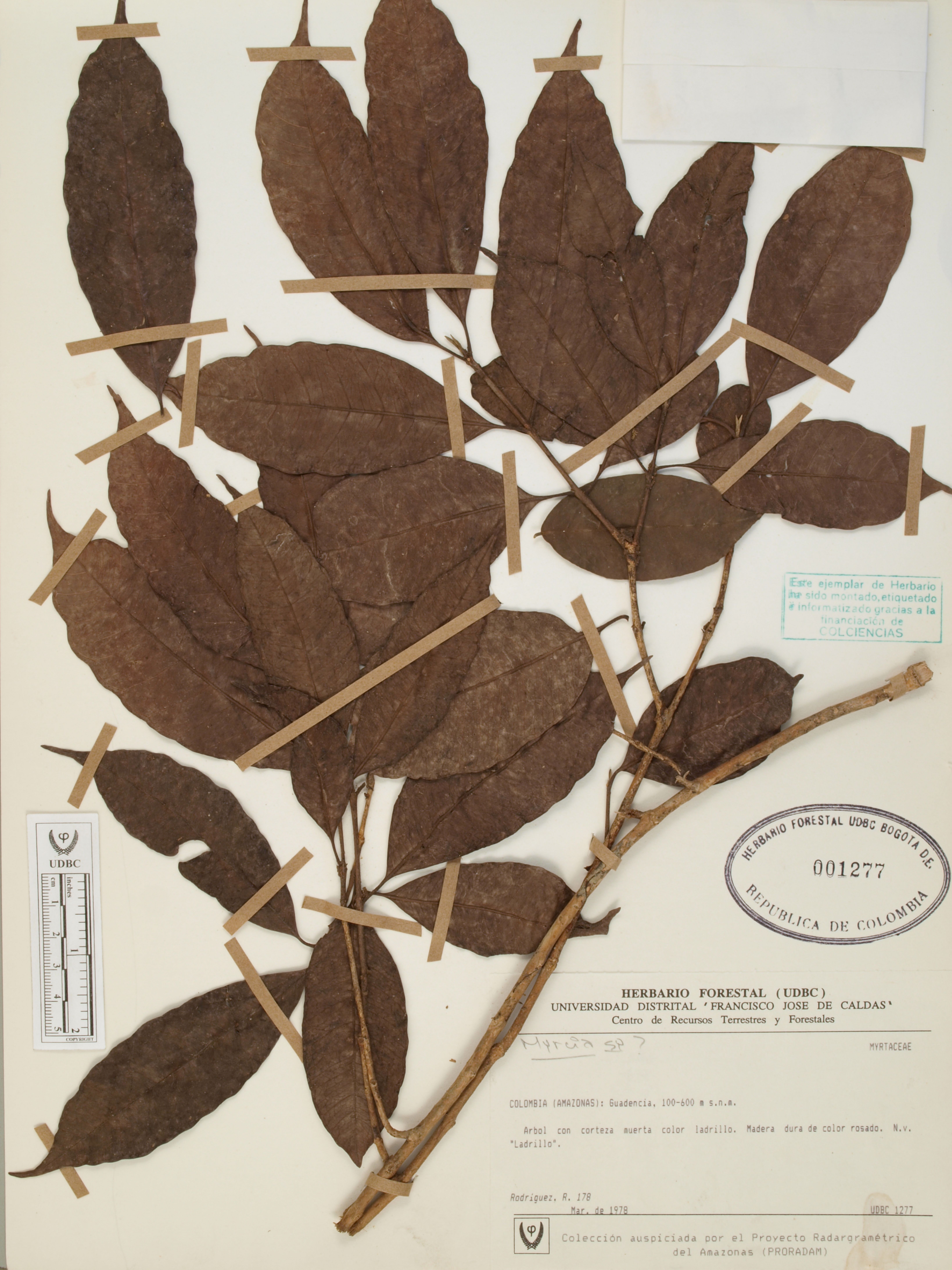 Fotografía del ejemplar Rodríguez, R. 178, determinado como Myrcia sp.