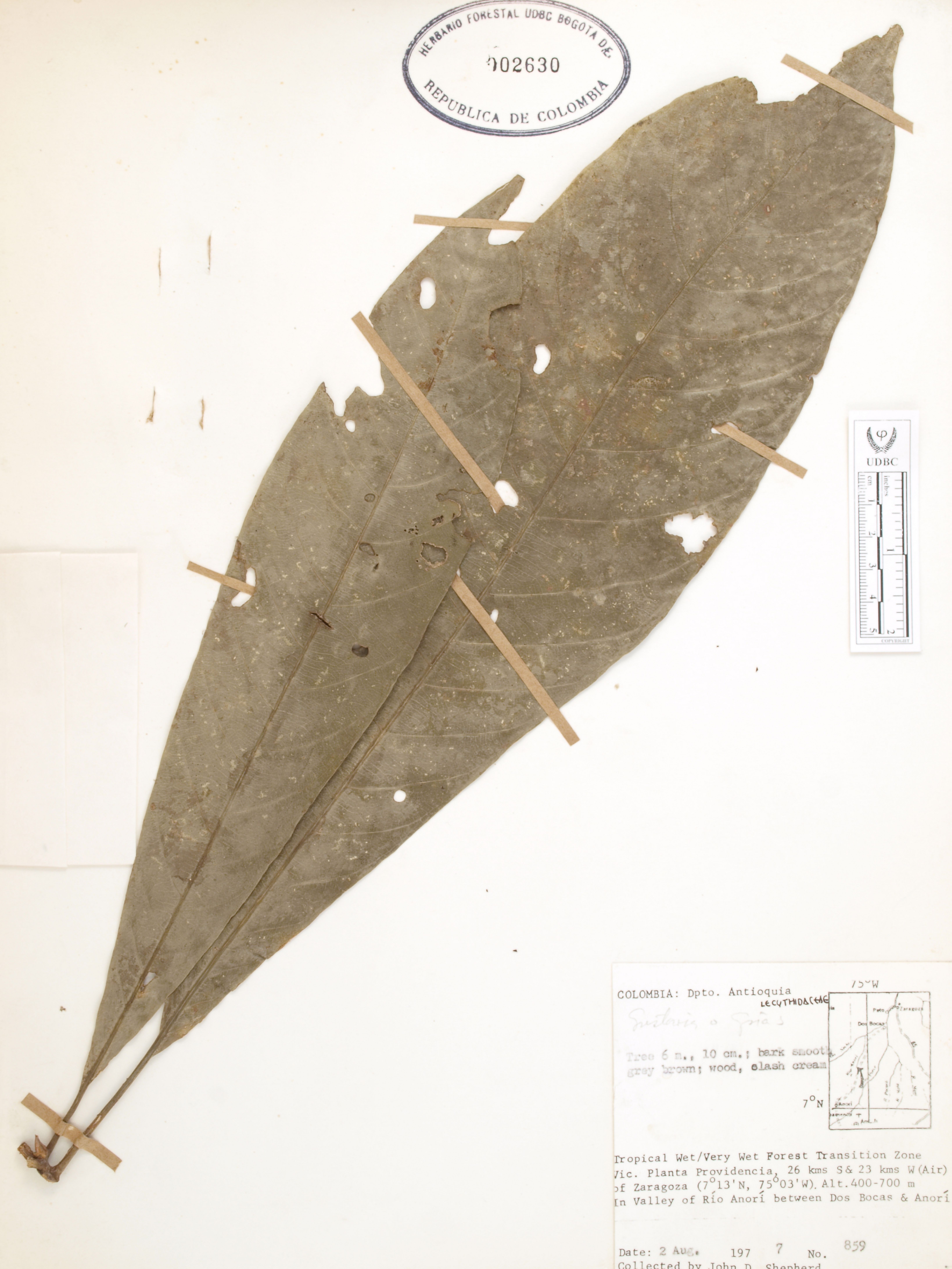 Fotografía del ejemplar Shepherd, J. 859, determinado como Gustavia speciosa en el año 2009