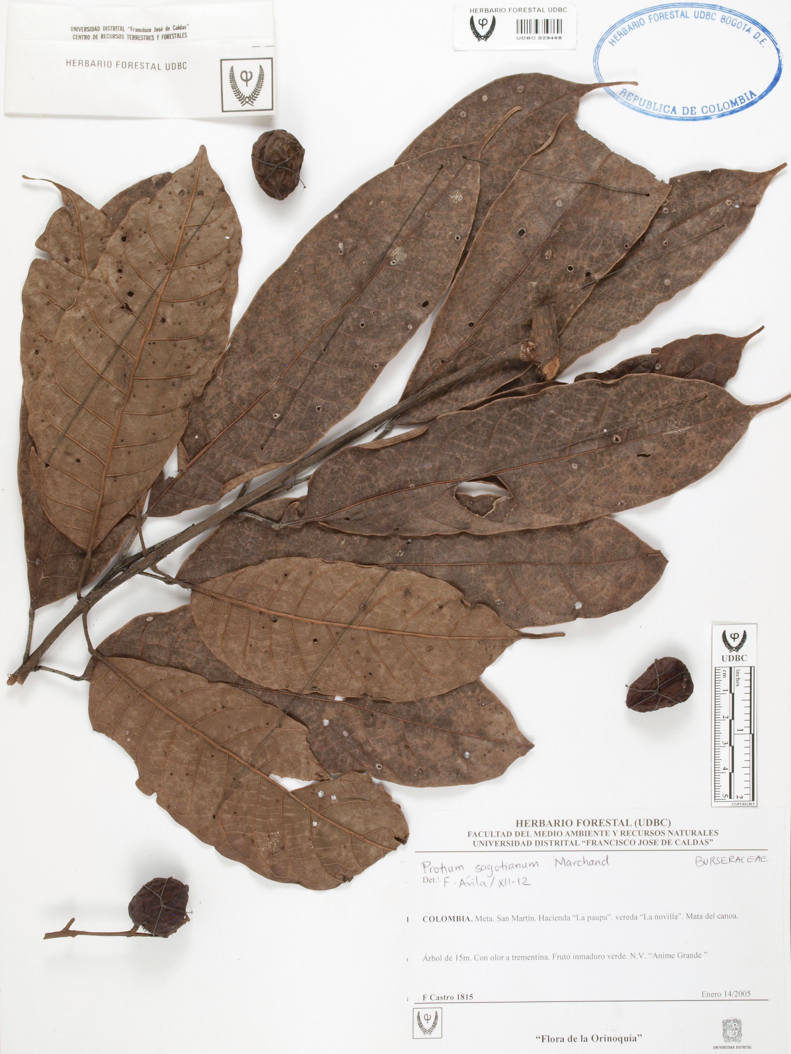 | dc.description | Fotografía del ejemplar Castro, F. 1815, determinado como Protium sagotianum | |
