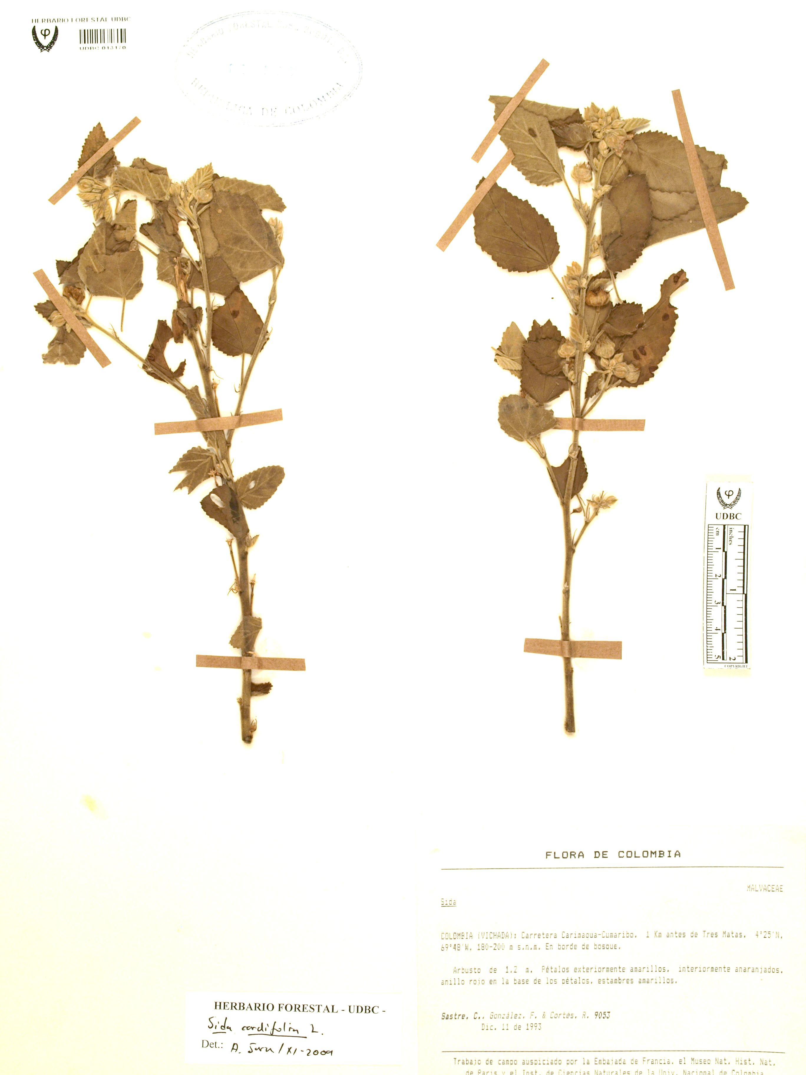| dc.description | Fotografía del ejemplar SD 9053, determinado como Sida cordifolia en el año 2009 | |