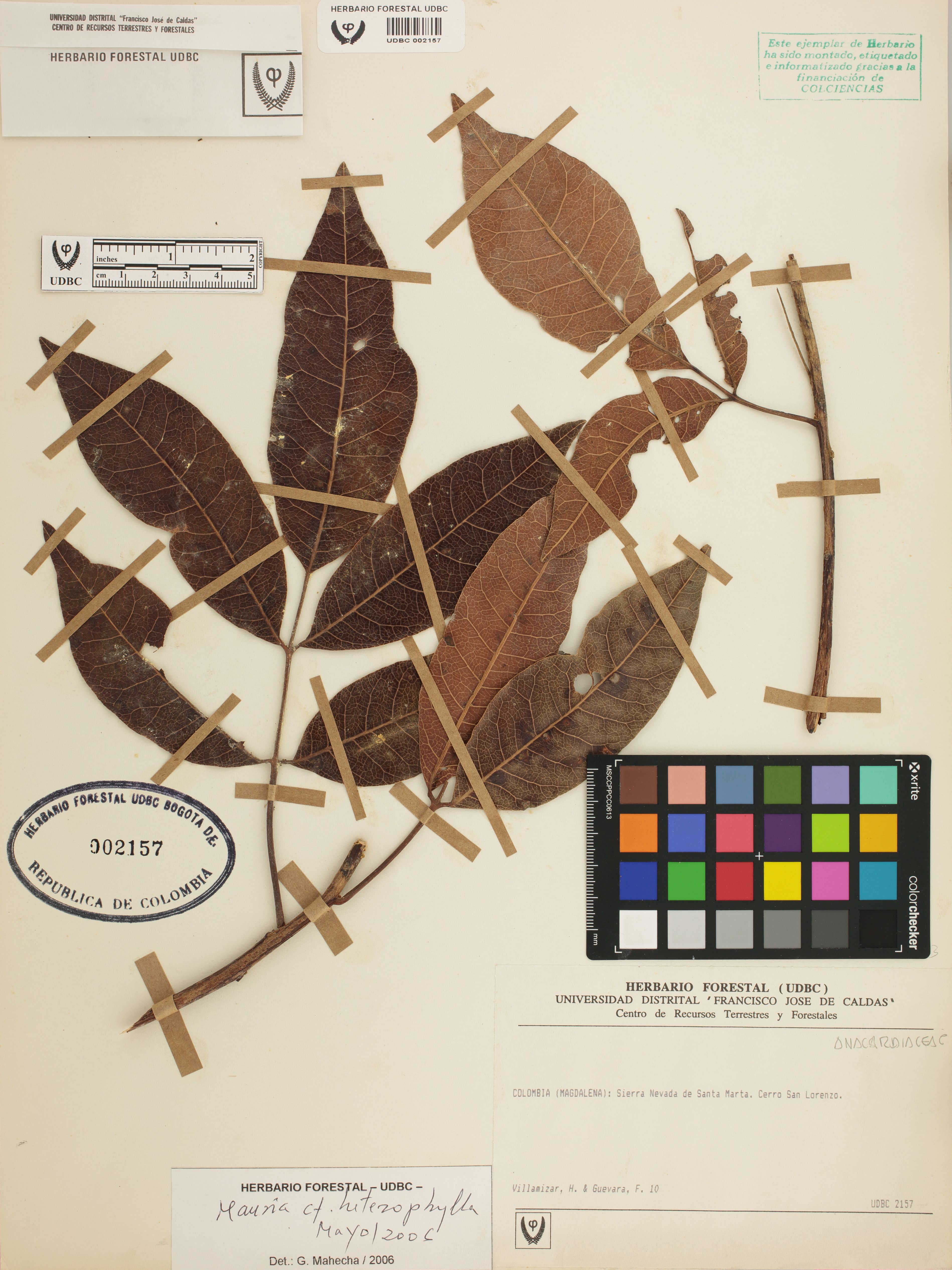 | dc.description | Fotografía del ejemplar Villamizar, H. 10, determinado como Mauria heterophylla en el año 2006 | |
