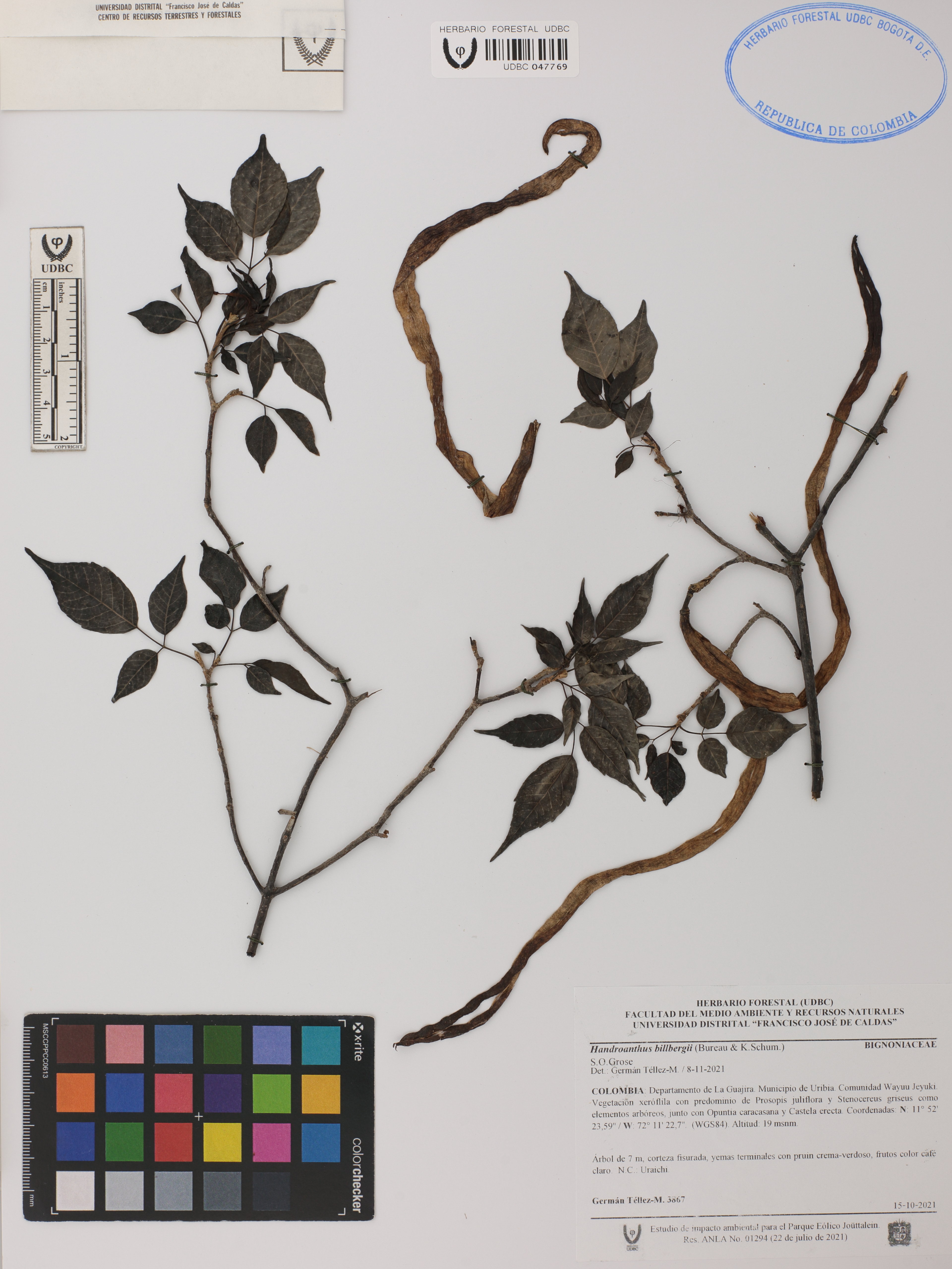 Fotografía del ejemplar Téllez-M., G. 3867, determinado como Handroanthus billbergii en el año 2021