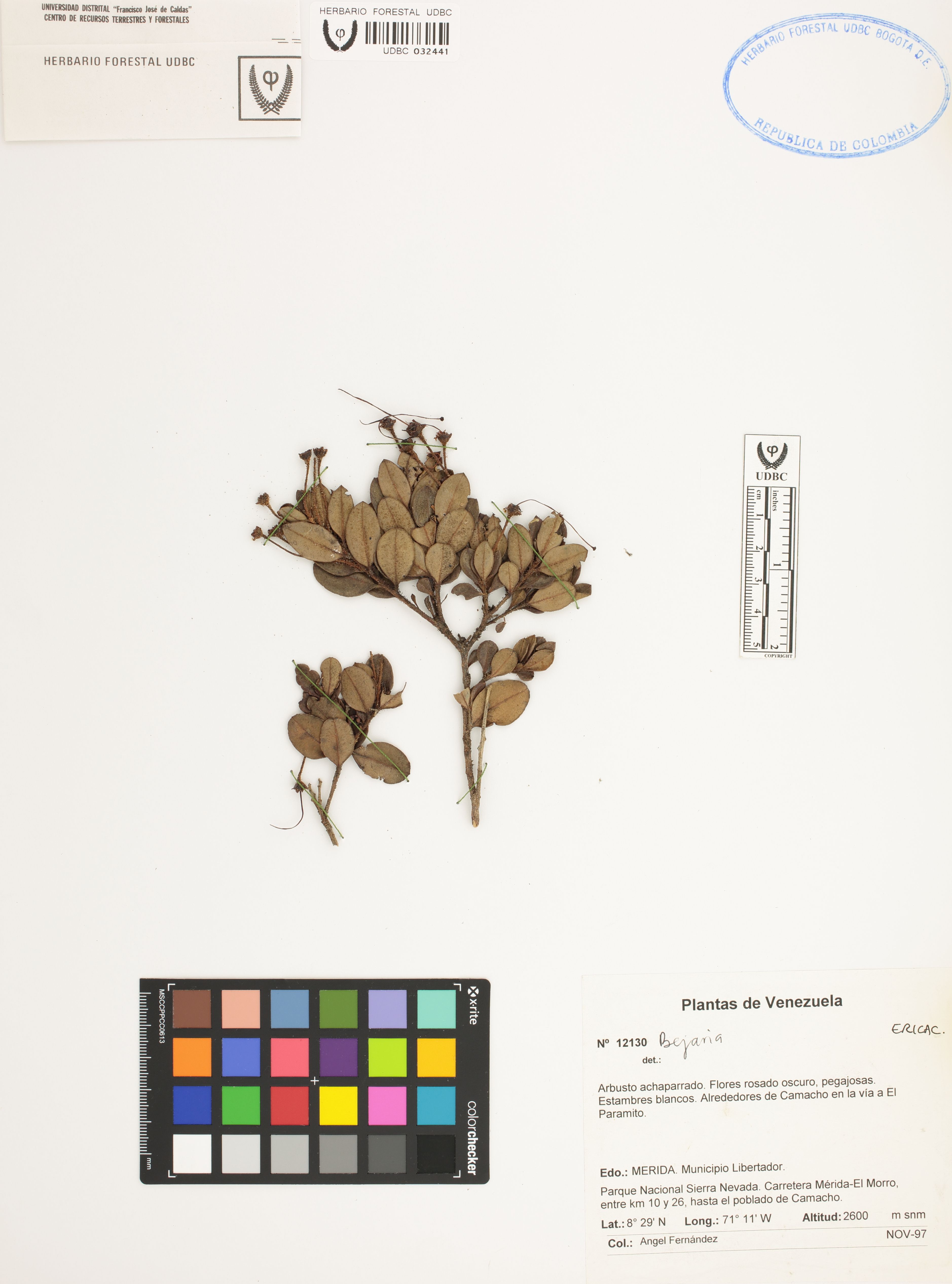 Fotografía del ejemplar Fernández, A. 12130, determinado como Bejaria sp.