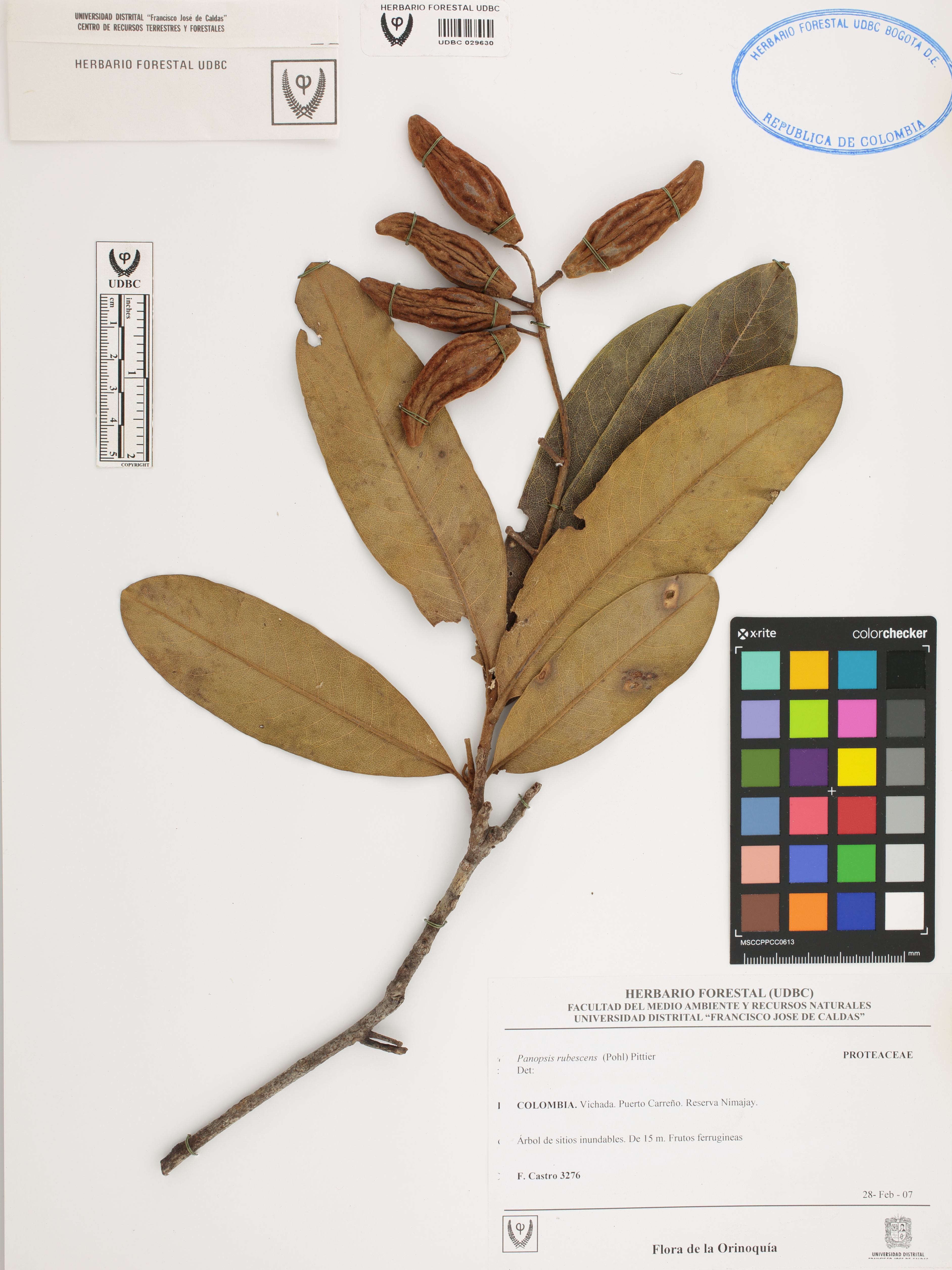 Fotografía del ejemplar Castro, F. 3276, determinado como Panopsis rubescens