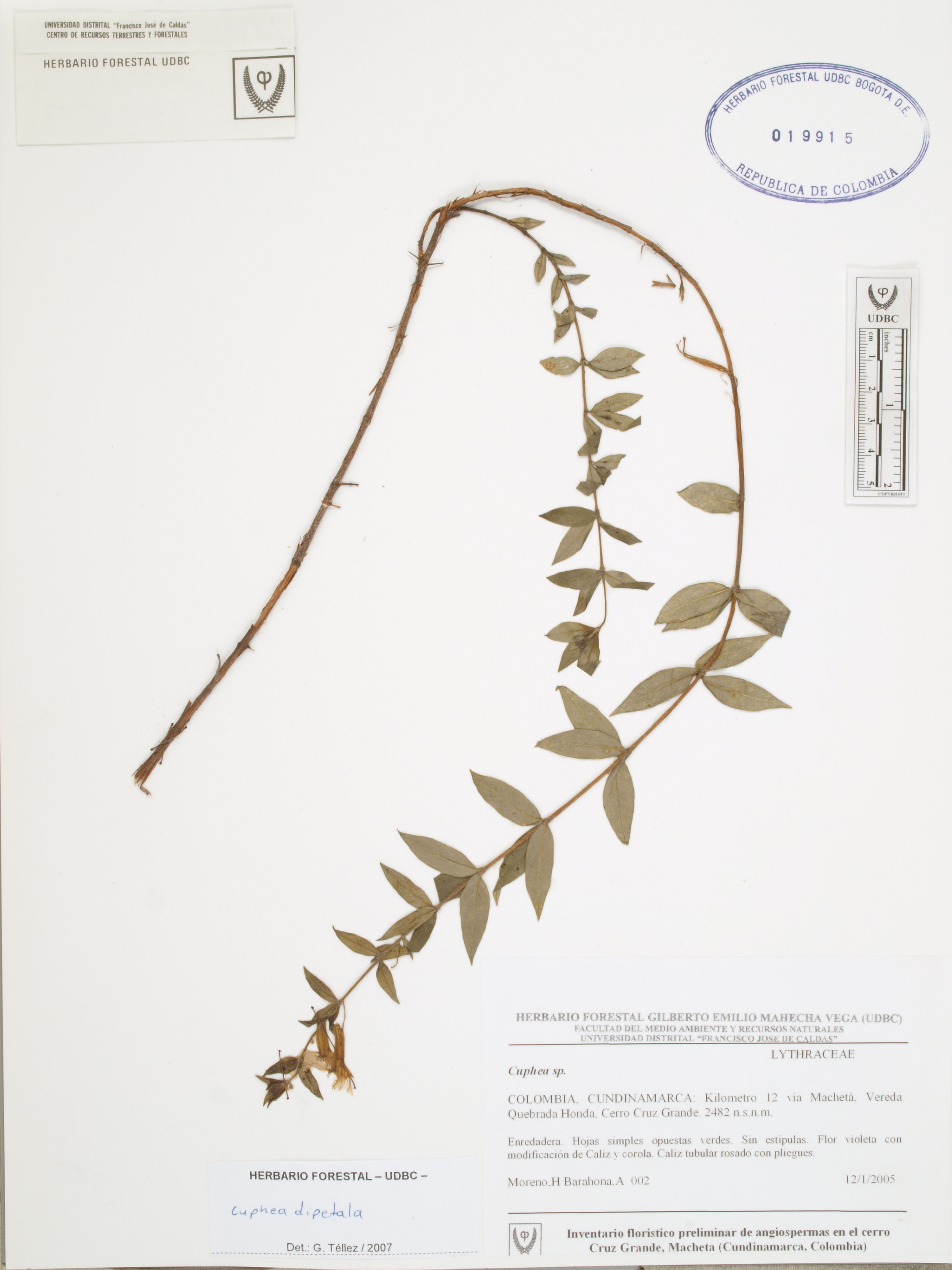 Fotografía del ejemplar Moreno, H. 2, determinado como Cuphea dipetala en el año 2005