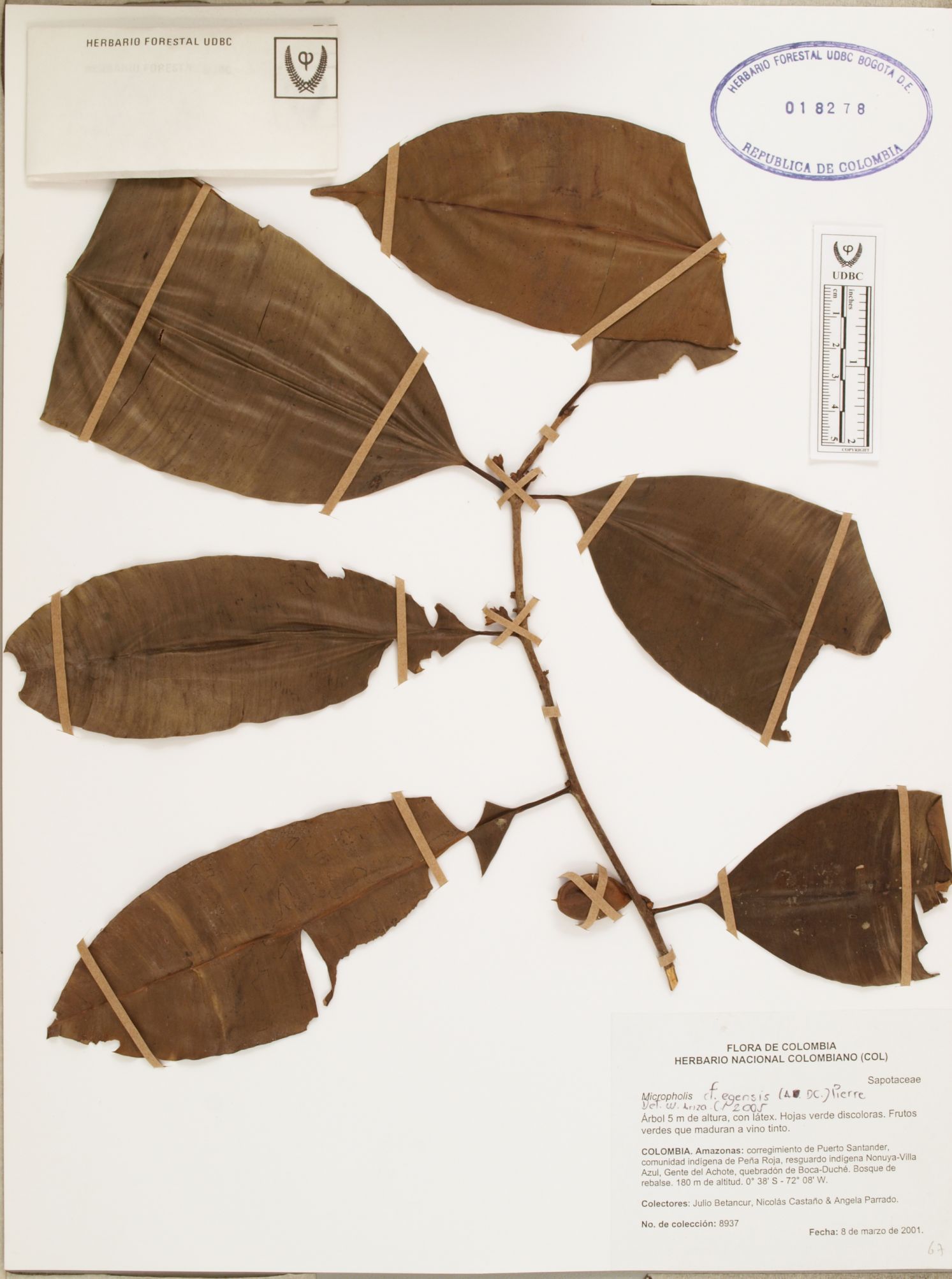 Fotografía del ejemplar Betancur, J. 8937, determinado como Micropholis egensis en el año 2005
