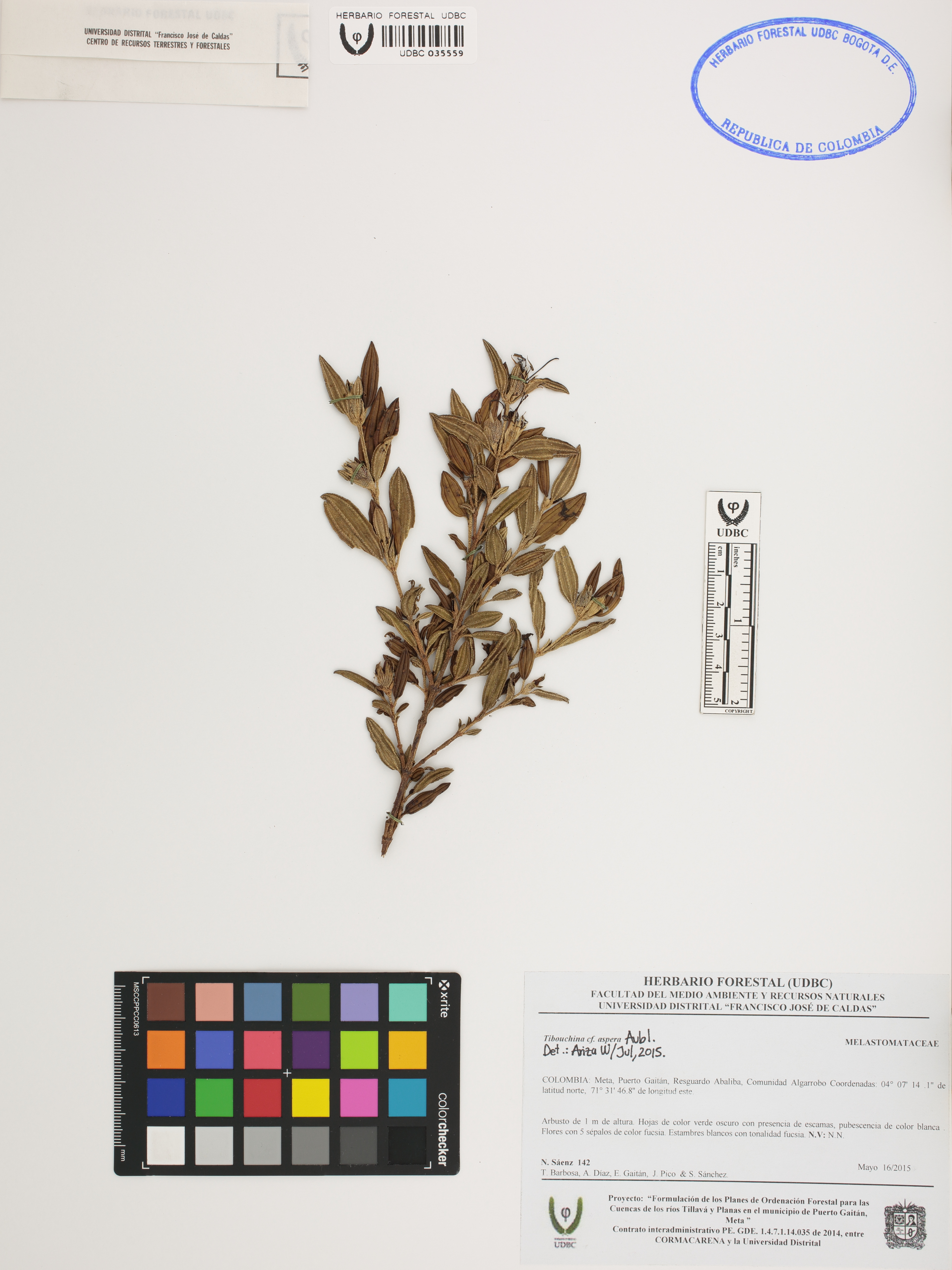 Fotografía del ejemplar Sáenz, N. 142, determinado como Tibouchina aspera en el año 2015
