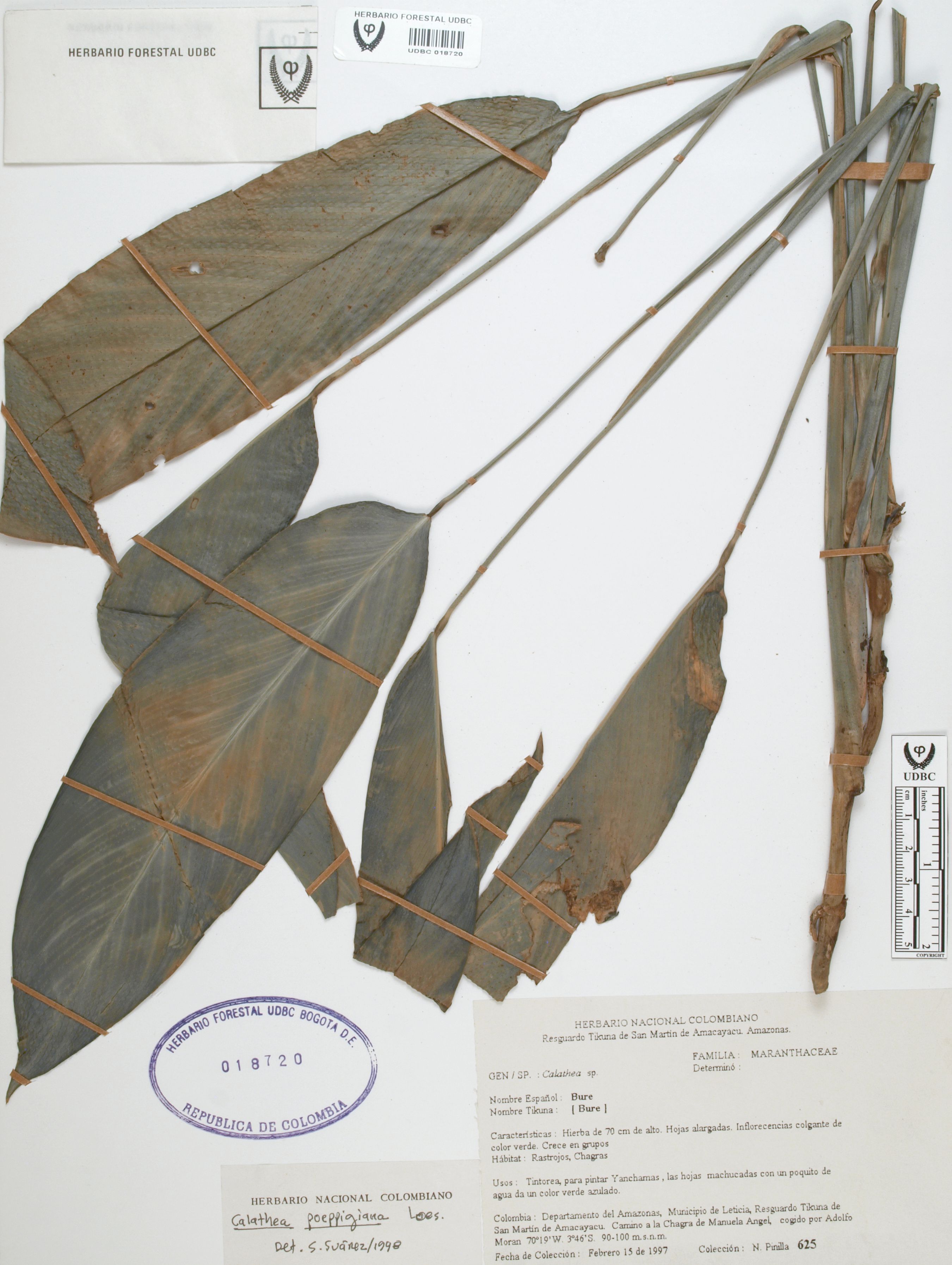 Fotografía del ejemplar Moran, A. 625, determinado como Calathea poeppigiana en el año 1998