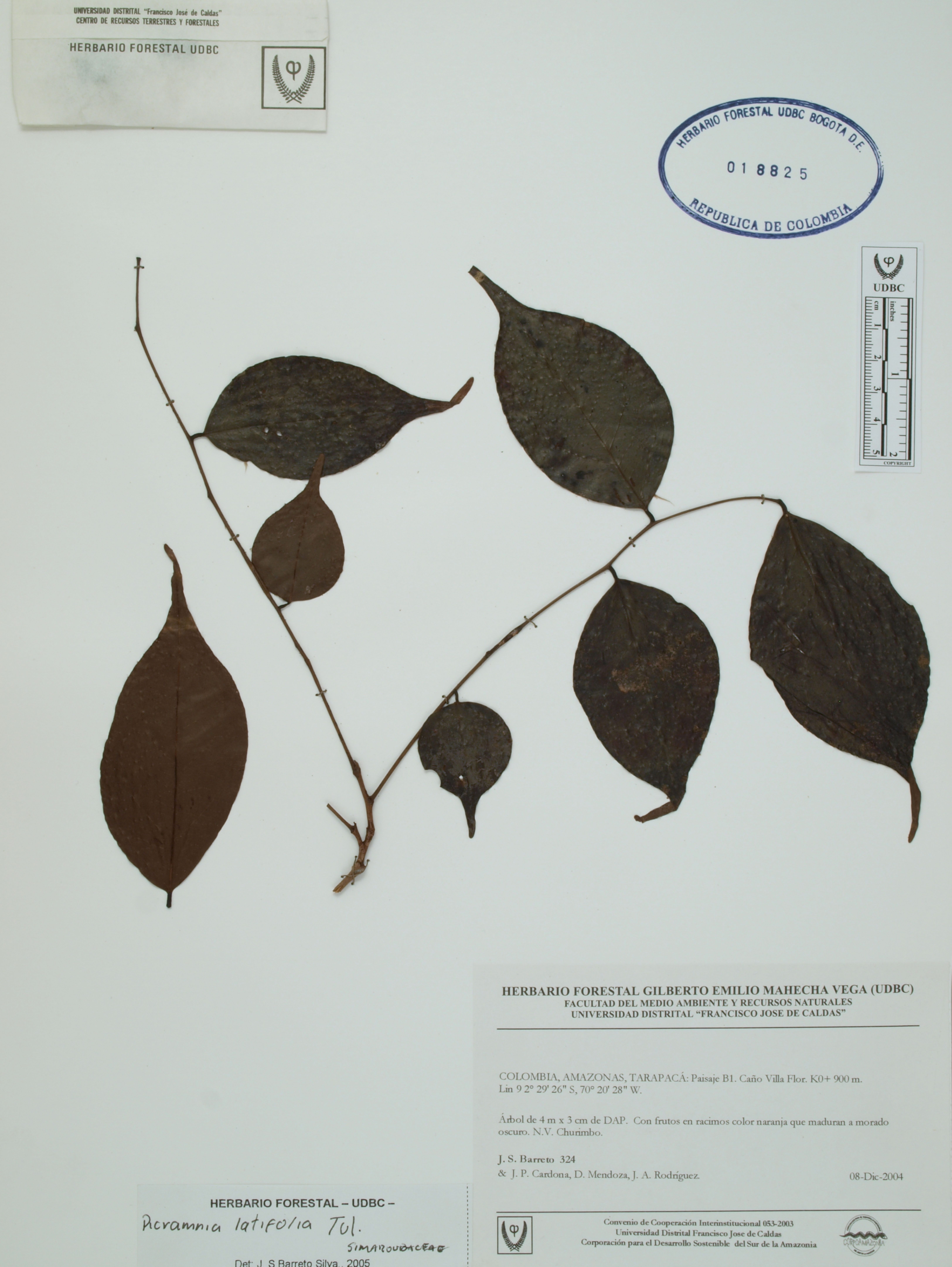 | dc.description | Fotografía del ejemplar Barreto, J. 324, determinado como Picramnia latifolia | |
