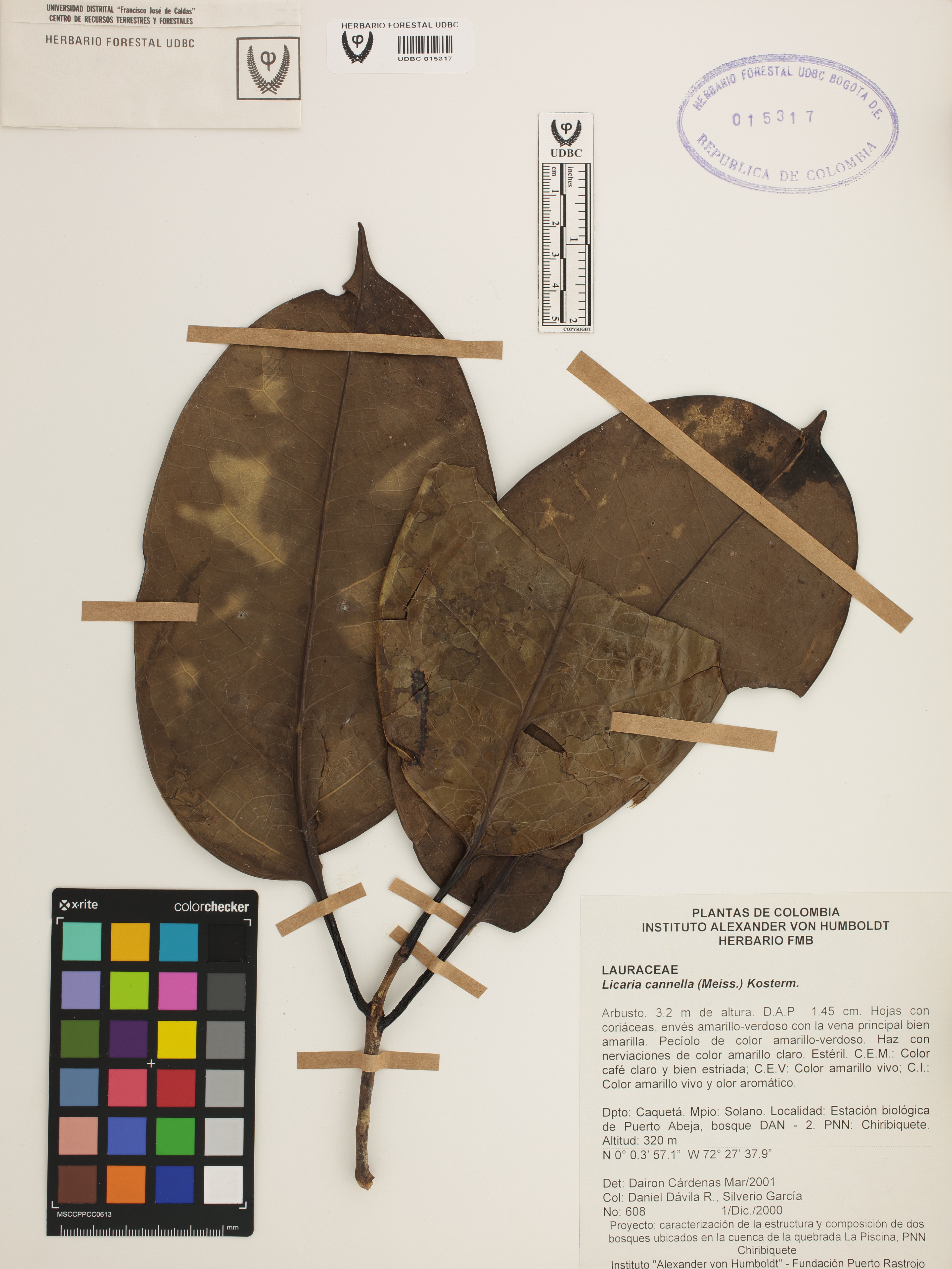 Fotografía del ejemplar Dávila-R., D. 608, determinado como Licaria cannella en el año 2001