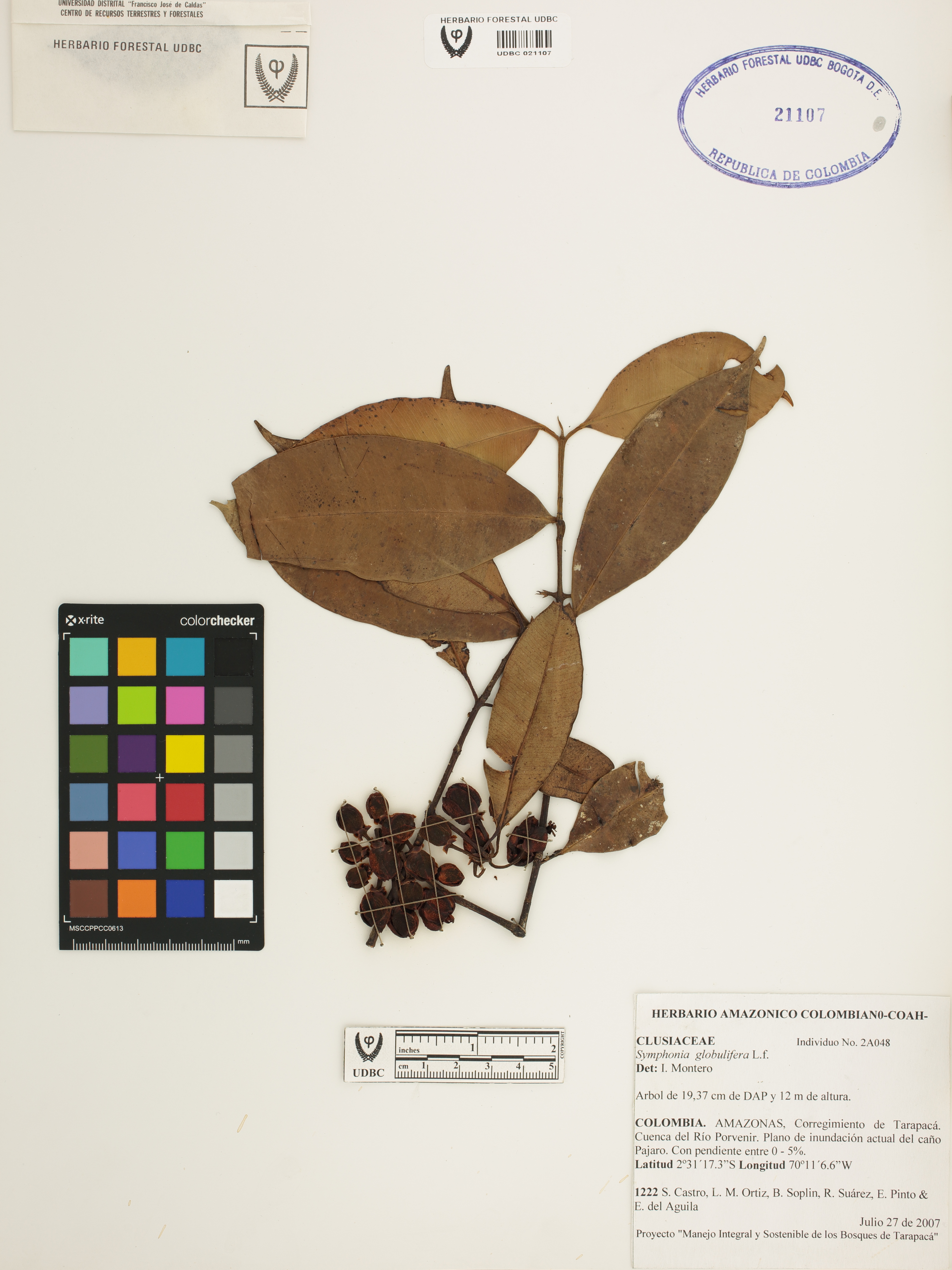 Fotografía del ejemplar Castro, S. 1222, determinado como Symphonia globulifera