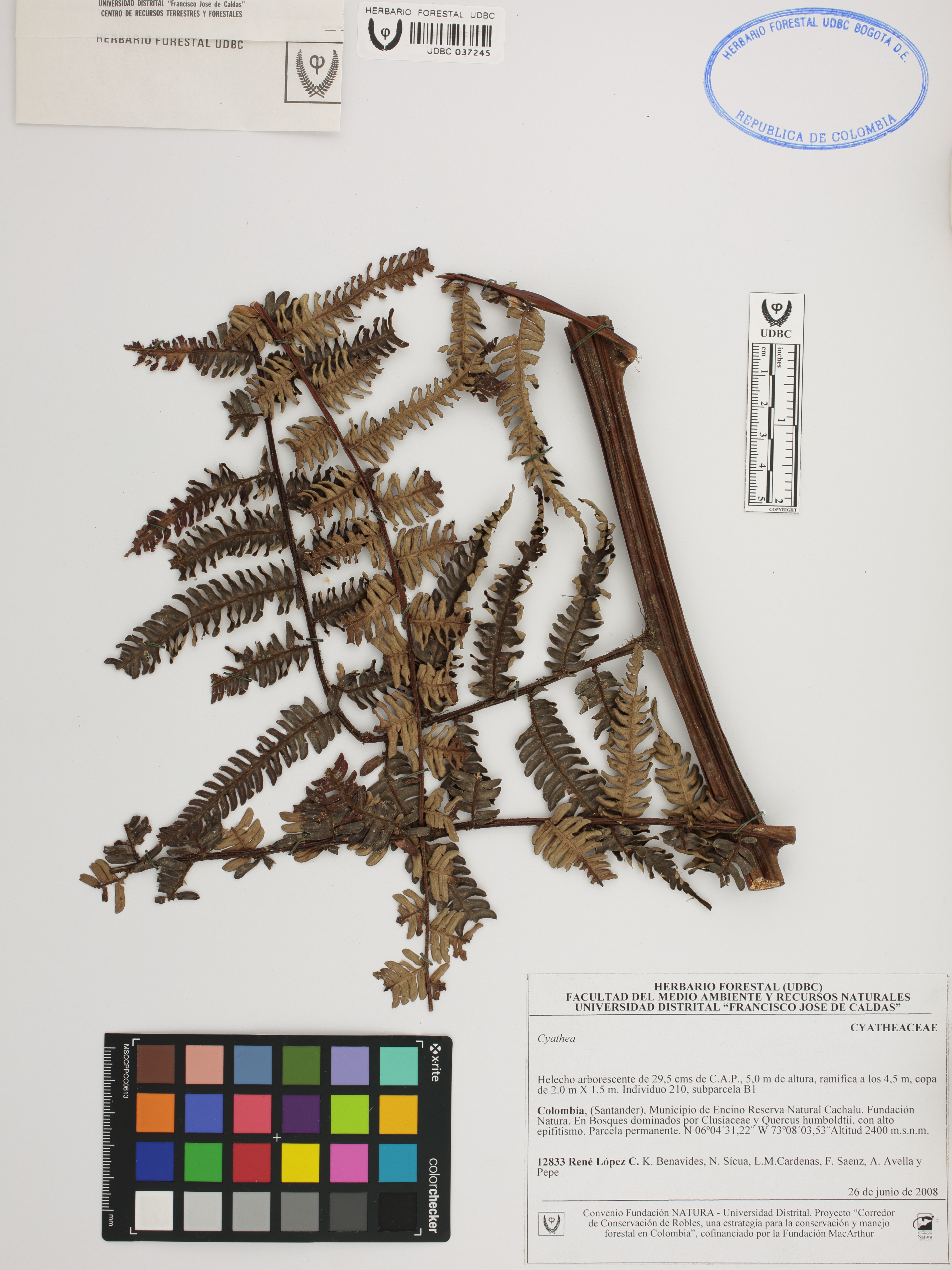 Fotografía del ejemplar López, R. 12833, determinado como Cyathea sp.