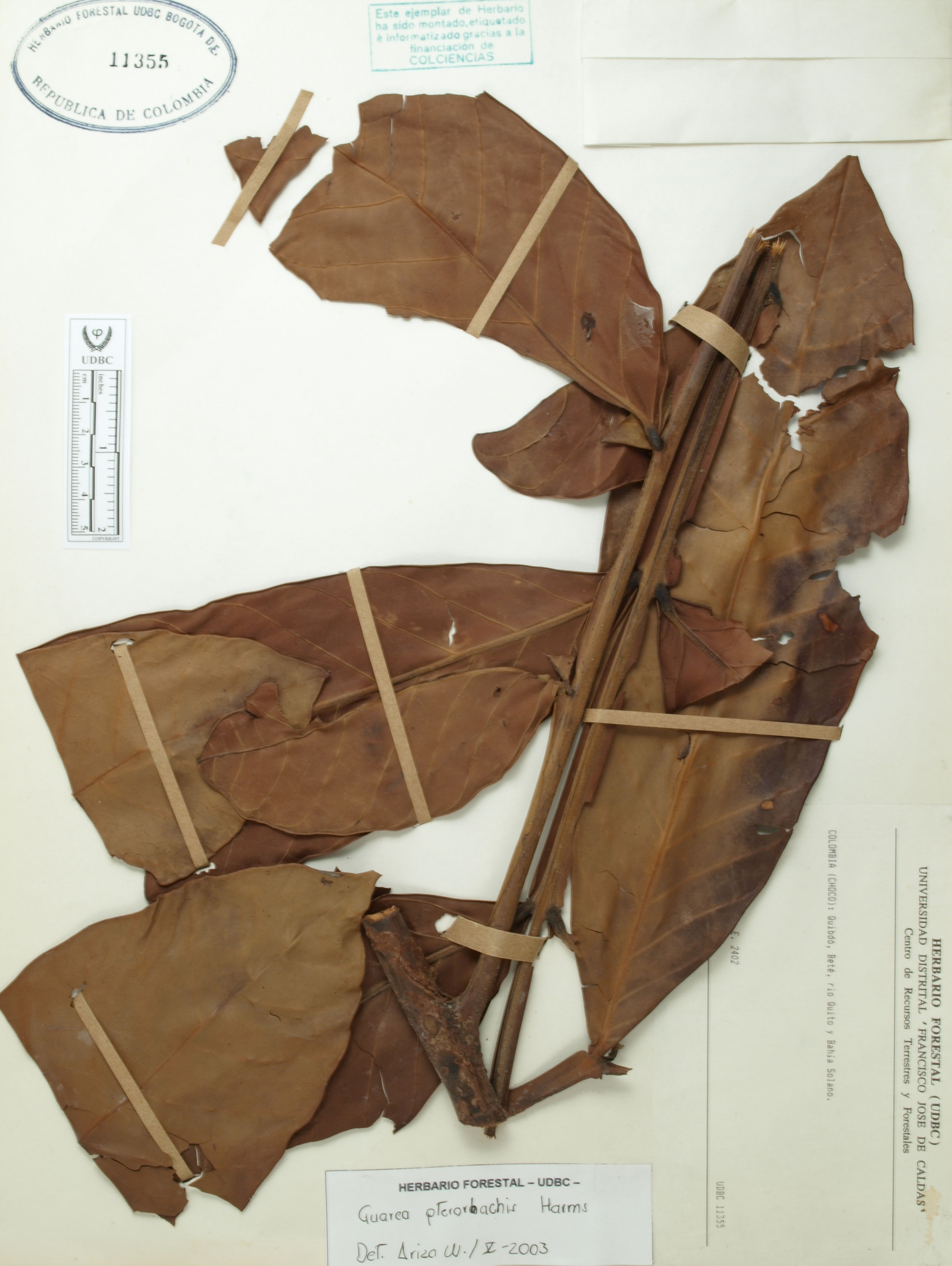 Fotografía del ejemplar Mahecha, G. 2402, determinado como Guarea pterorhachis en el año 2003