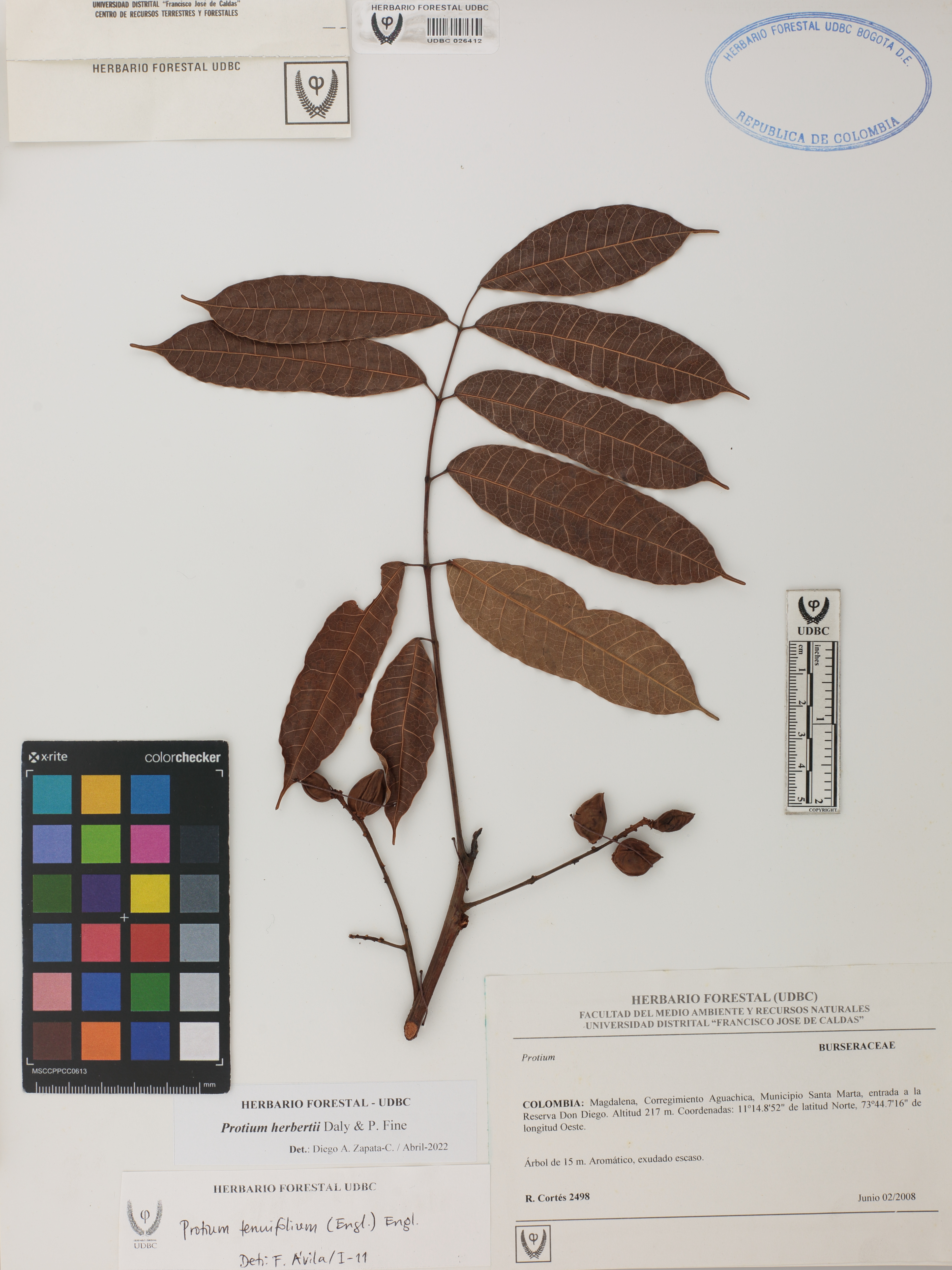 Fotografía del ejemplar Cortés-B., R. 2498, determinado como Protium herbertii en el año 2022
