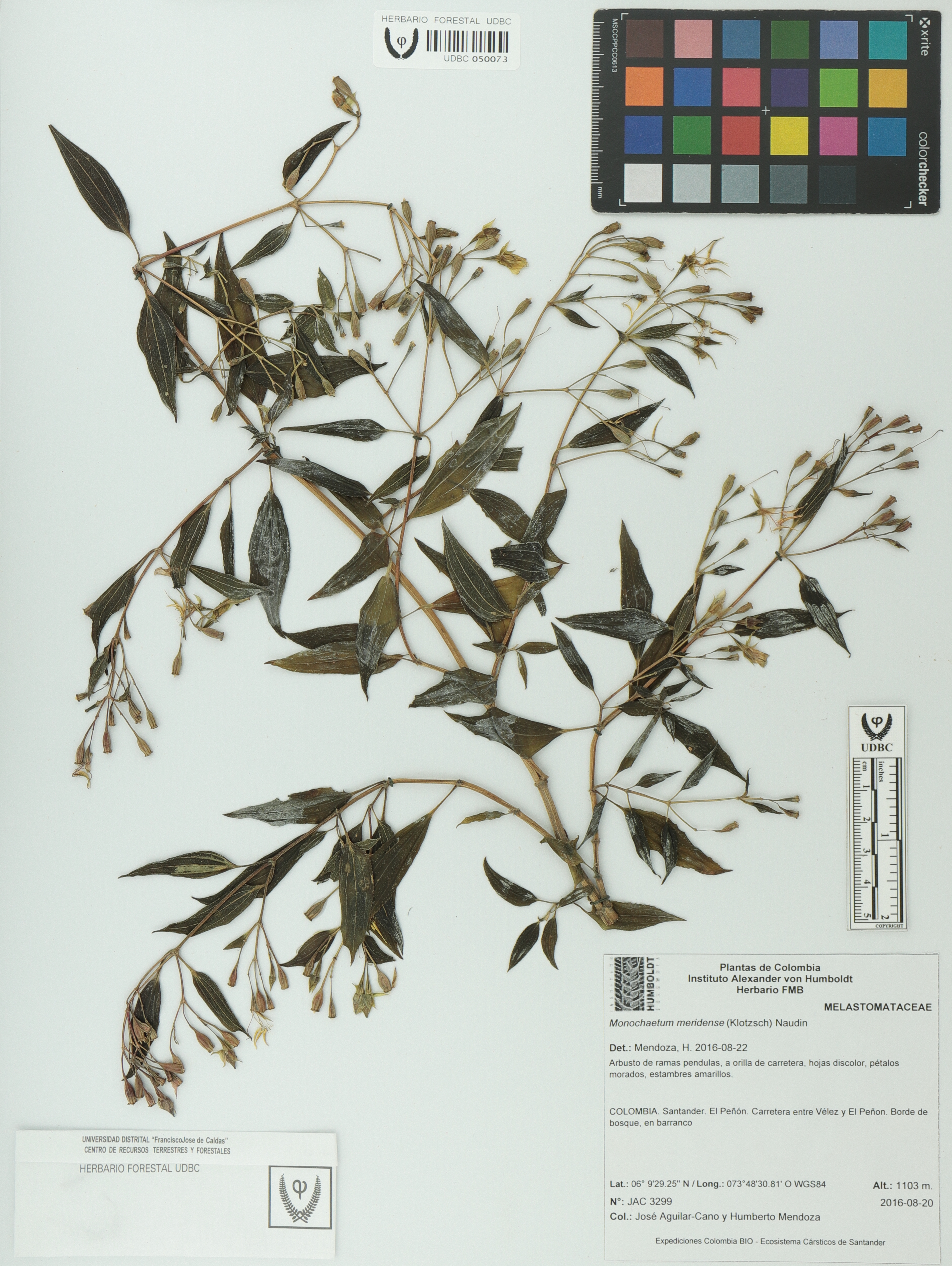 Fotografía del ejemplar Aguilar-Cano, J. 3299, determinado como Monochaetum meridense en el año 2016