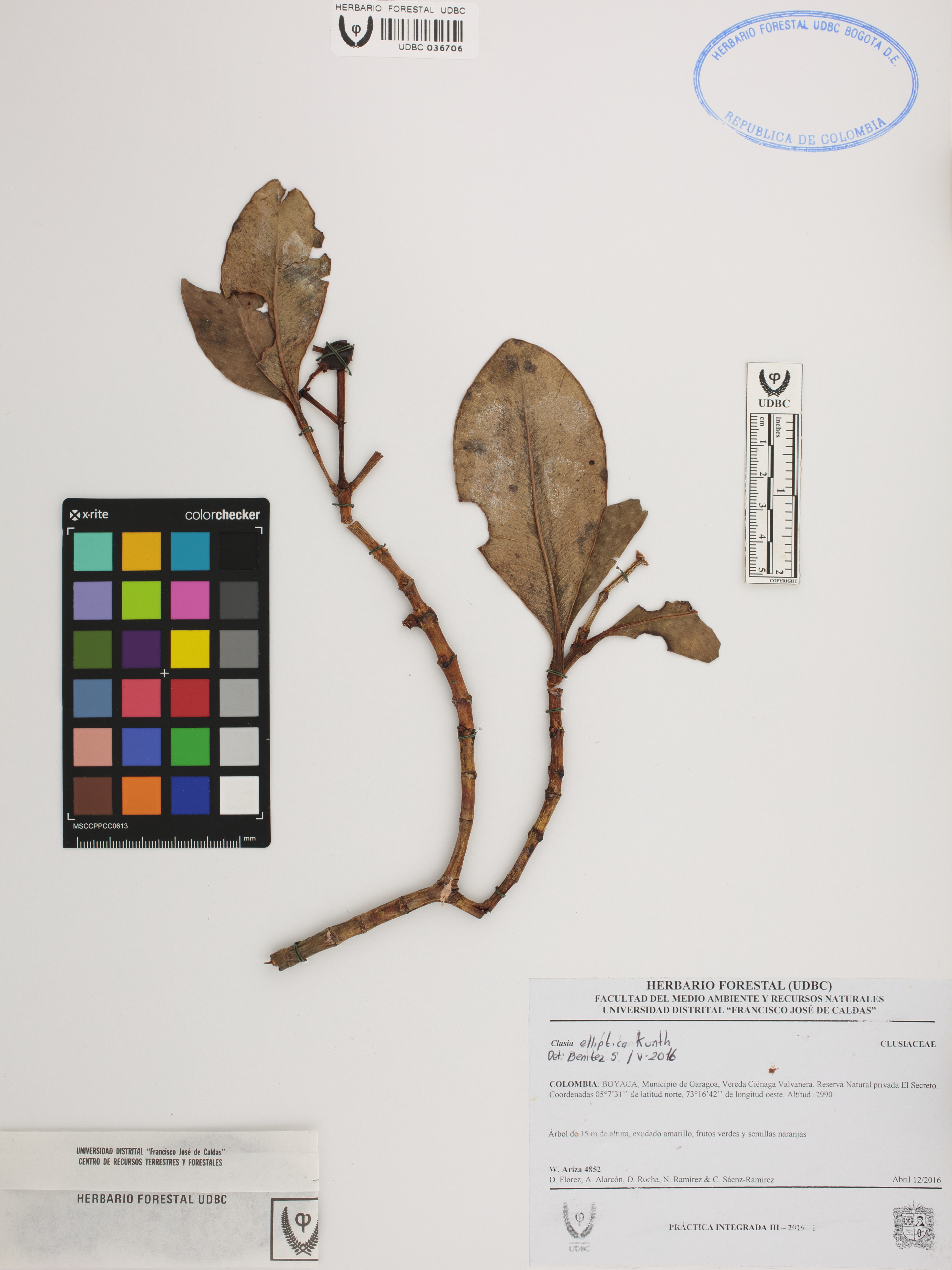 Fotografía del ejemplar Ariza, W. 4852, determinado como Clusia elliptica en el año 2016