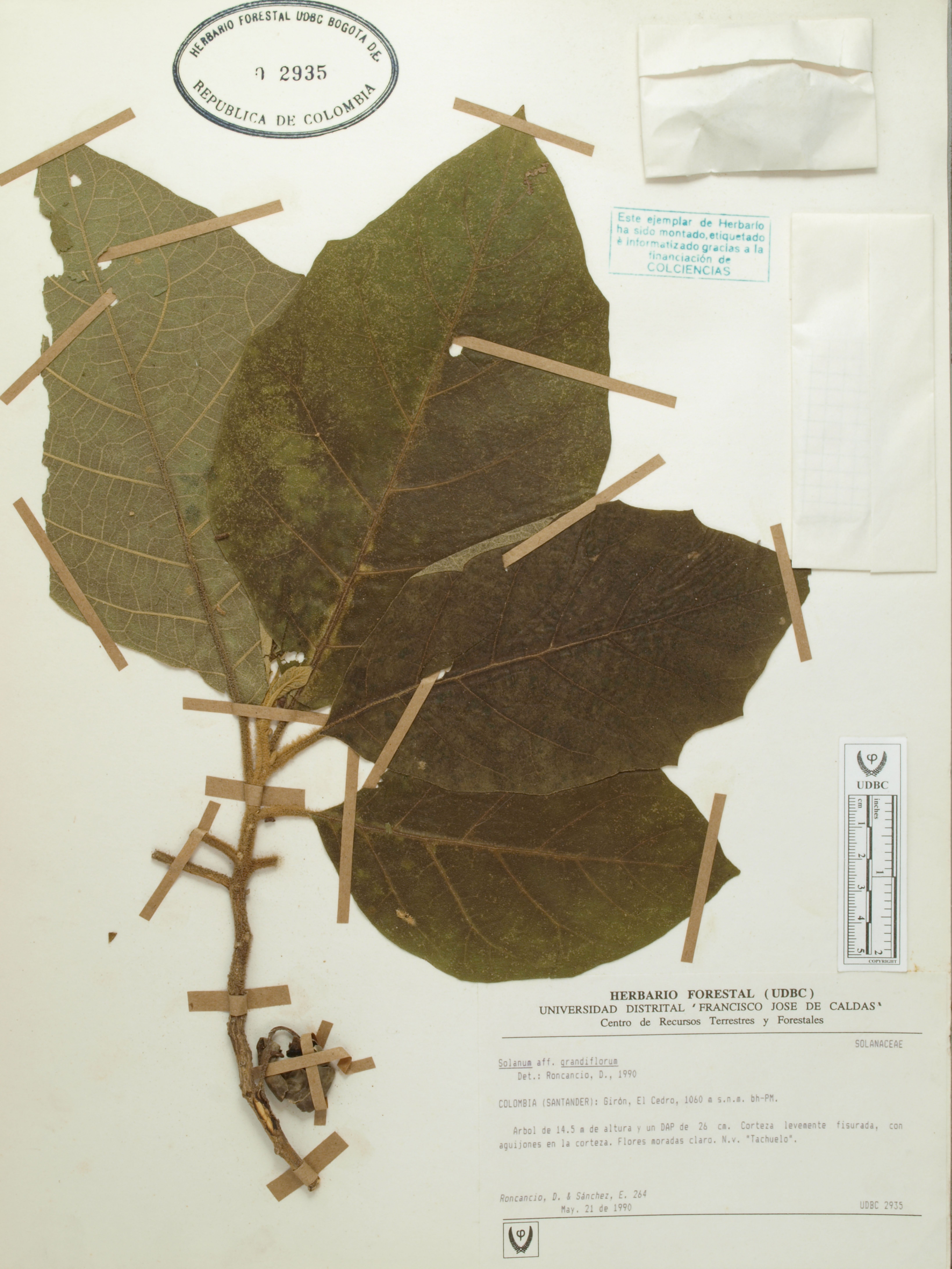 Fotografía del ejemplar Roncancio, D. 264, determinado como Solanum grandiflorum en el año 1990
