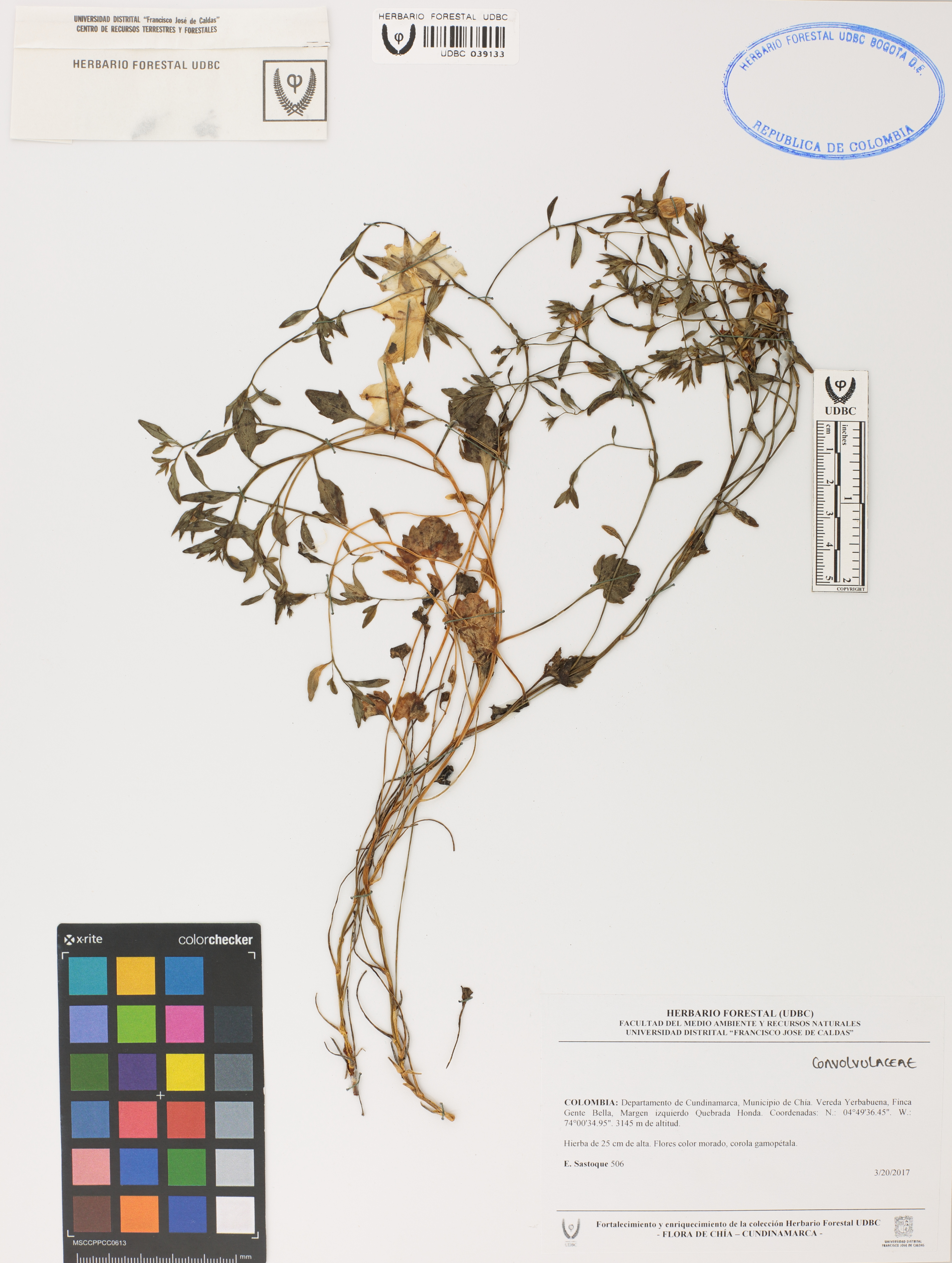 Fotografía del ejemplar Sastoque, E. 506, determinado como Convolvulaceae