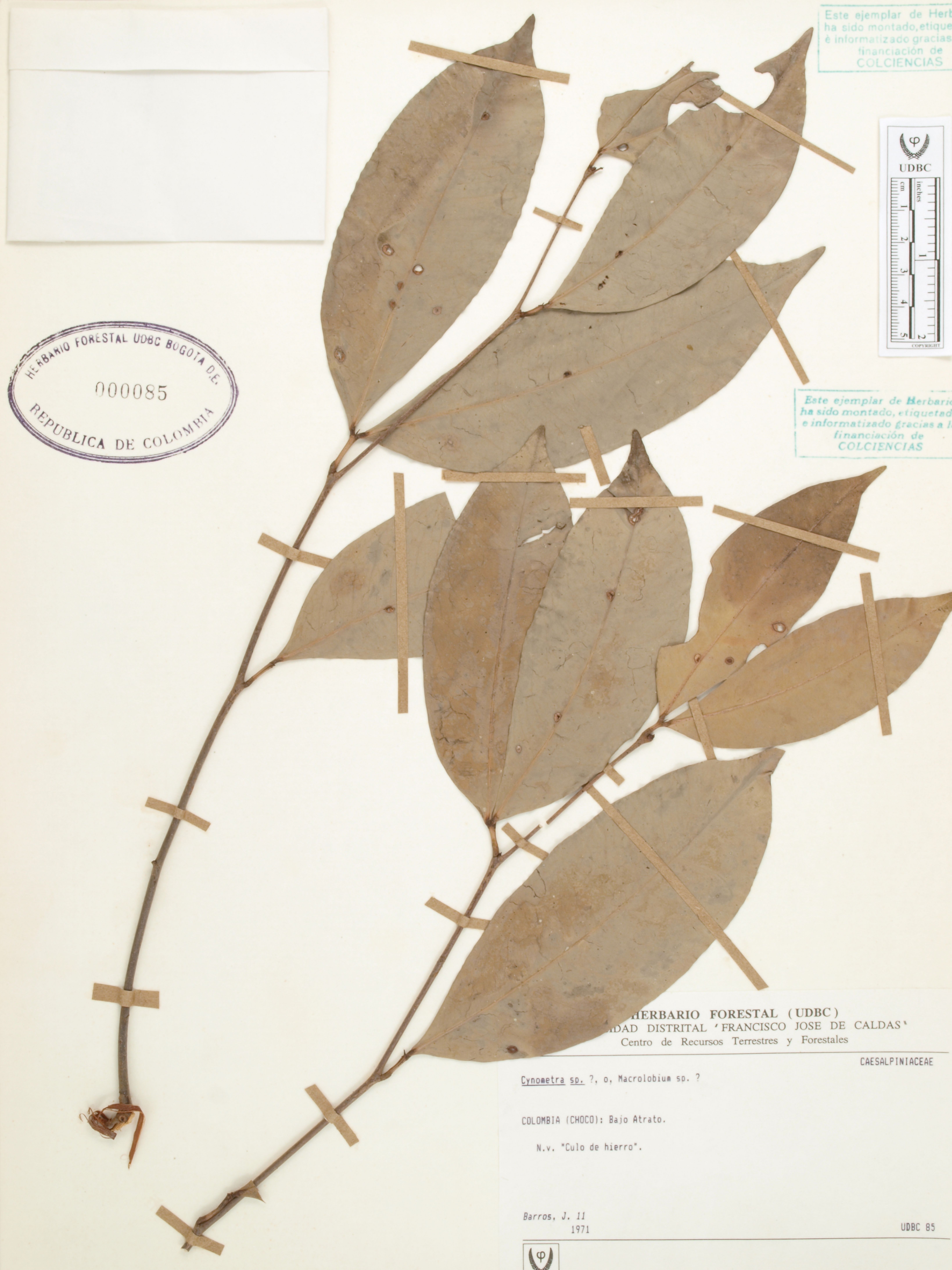 Fotografía del ejemplar Barros, J. 11, determinado como Cynometra sp.