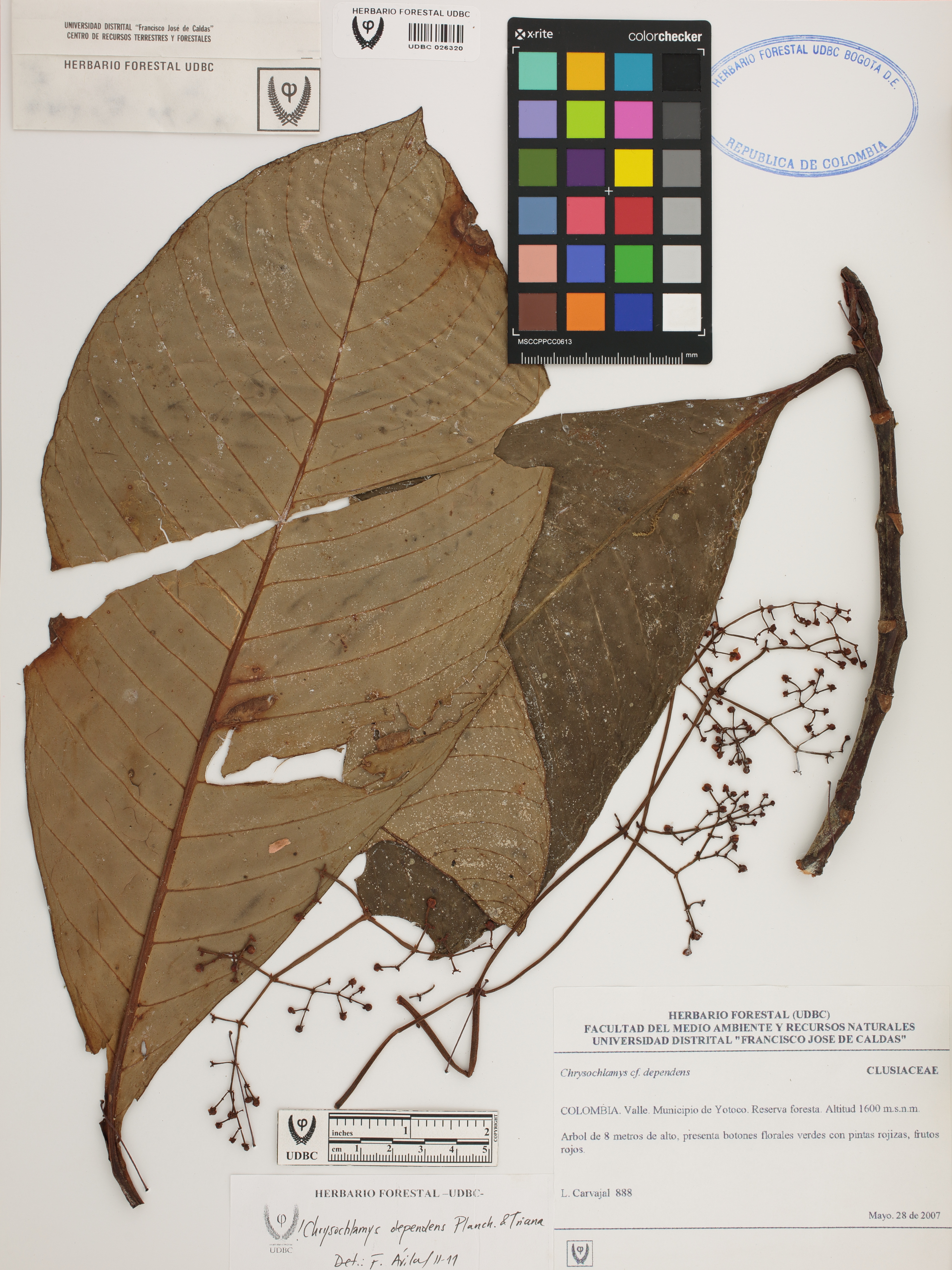 Fotografía del ejemplar Carvajal, L. 888, determinado como Chrysochlamys dependens en el año 2011