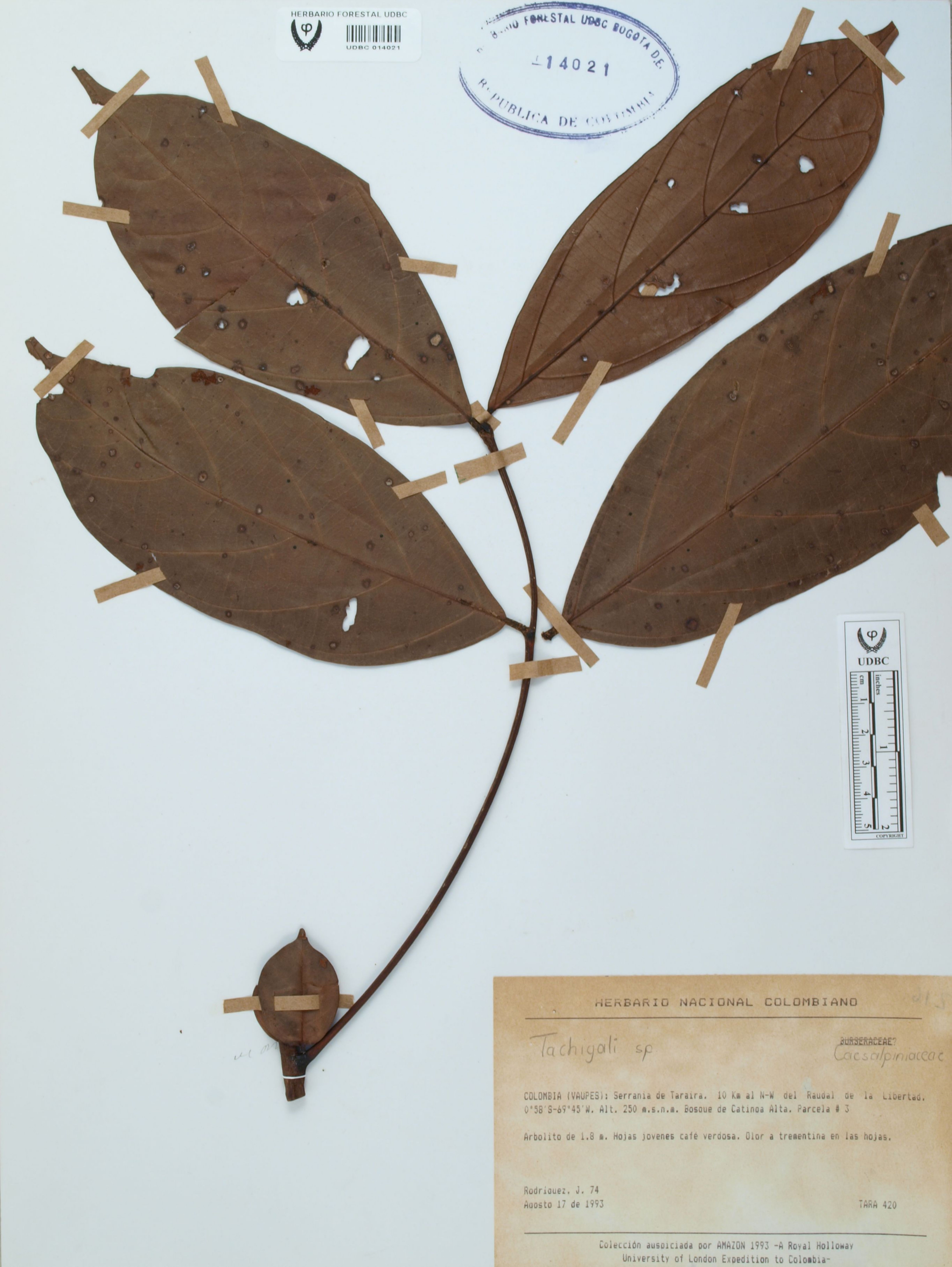 Fotografía del ejemplar Rodríguez, J. 74, determinado como Tachigali sp.