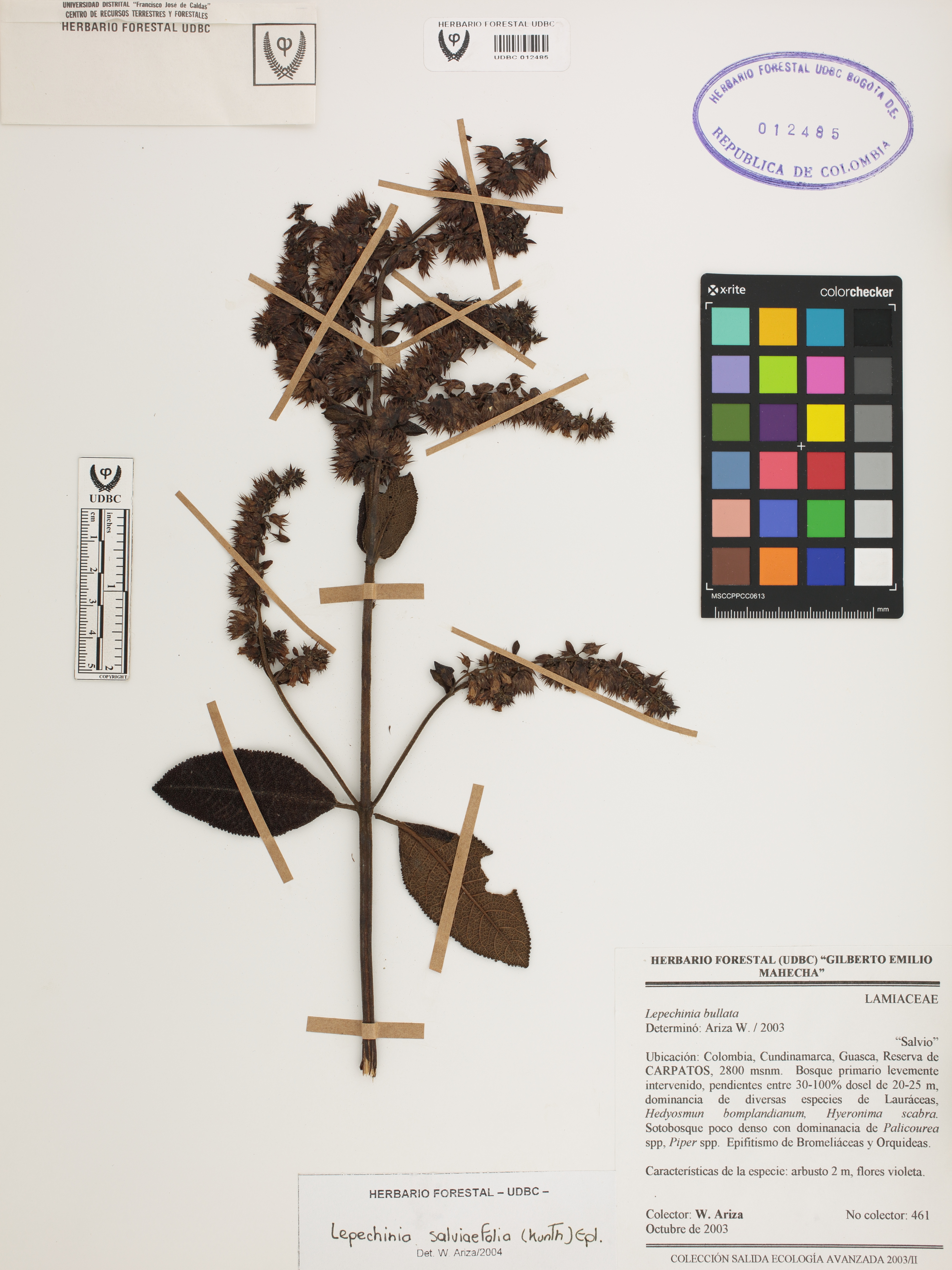 Fotografía del ejemplar Ariza, W. 461, determinado como Lepechinia salviifolia en el año 2004