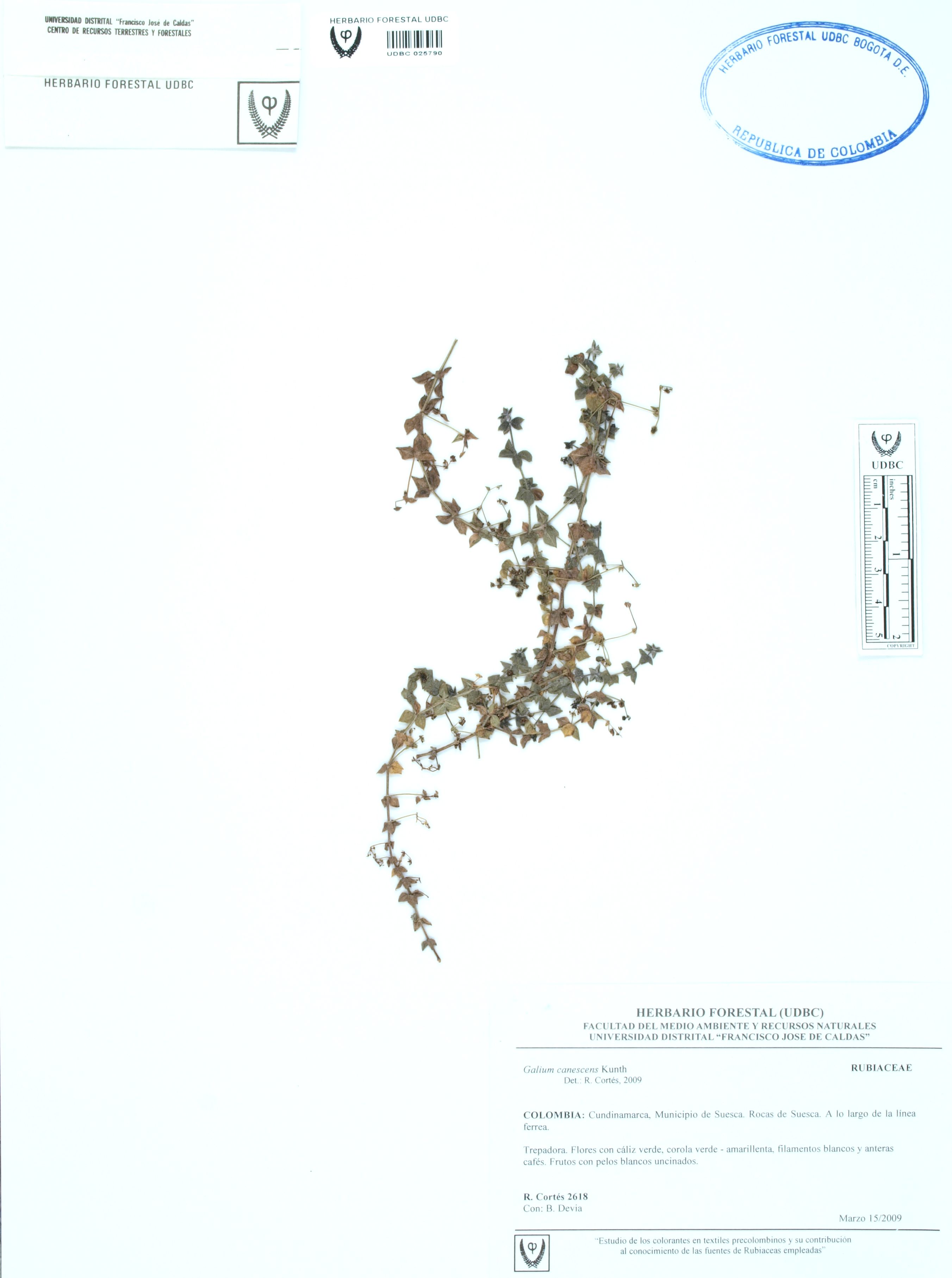 Fotografía del ejemplar Cortés-B., R. 2618, determinado como Galium canescens en el año 2009