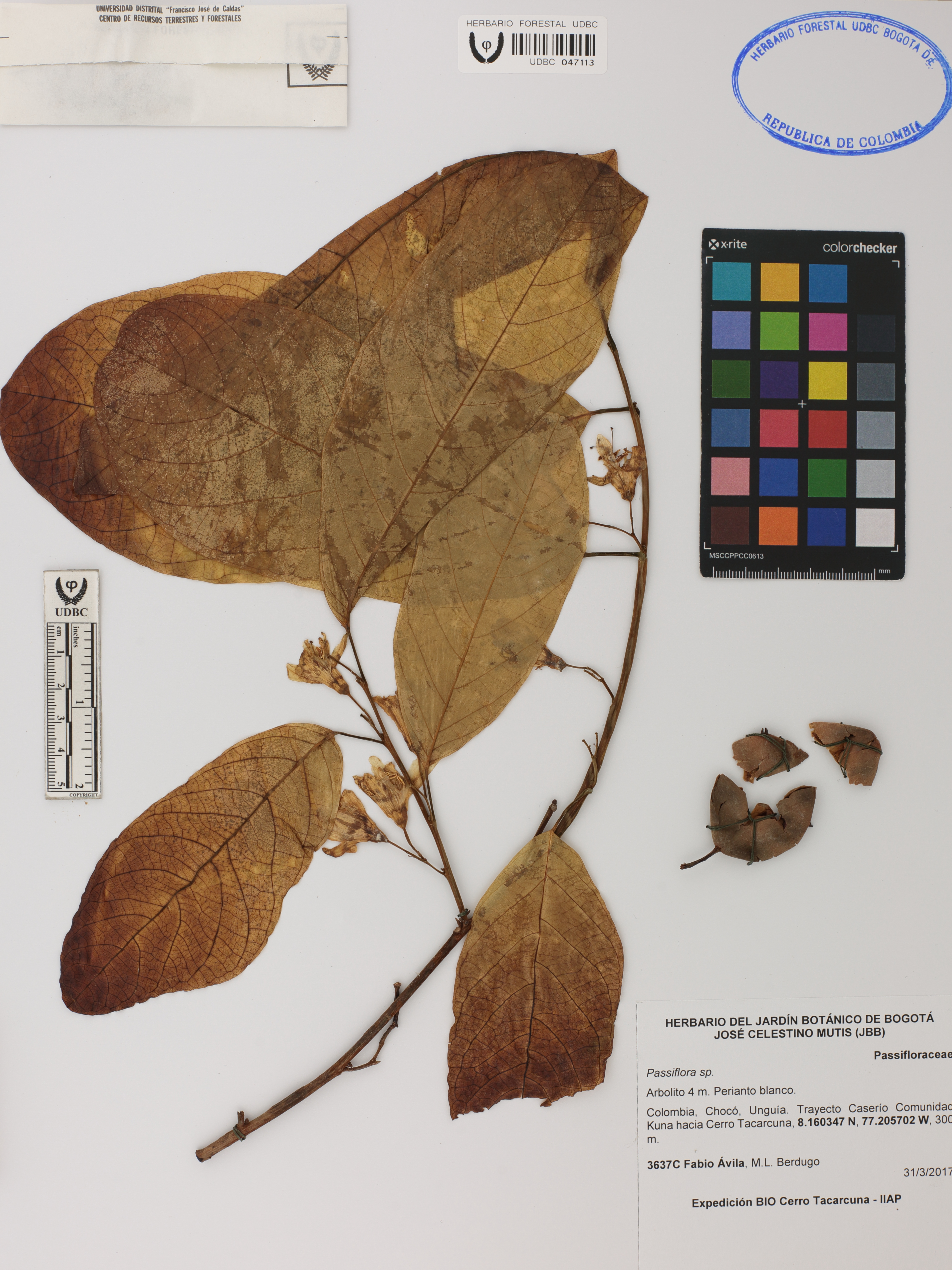 Fotografía del ejemplar Ávila, F. 3637C, determinado como Passiflora sp.