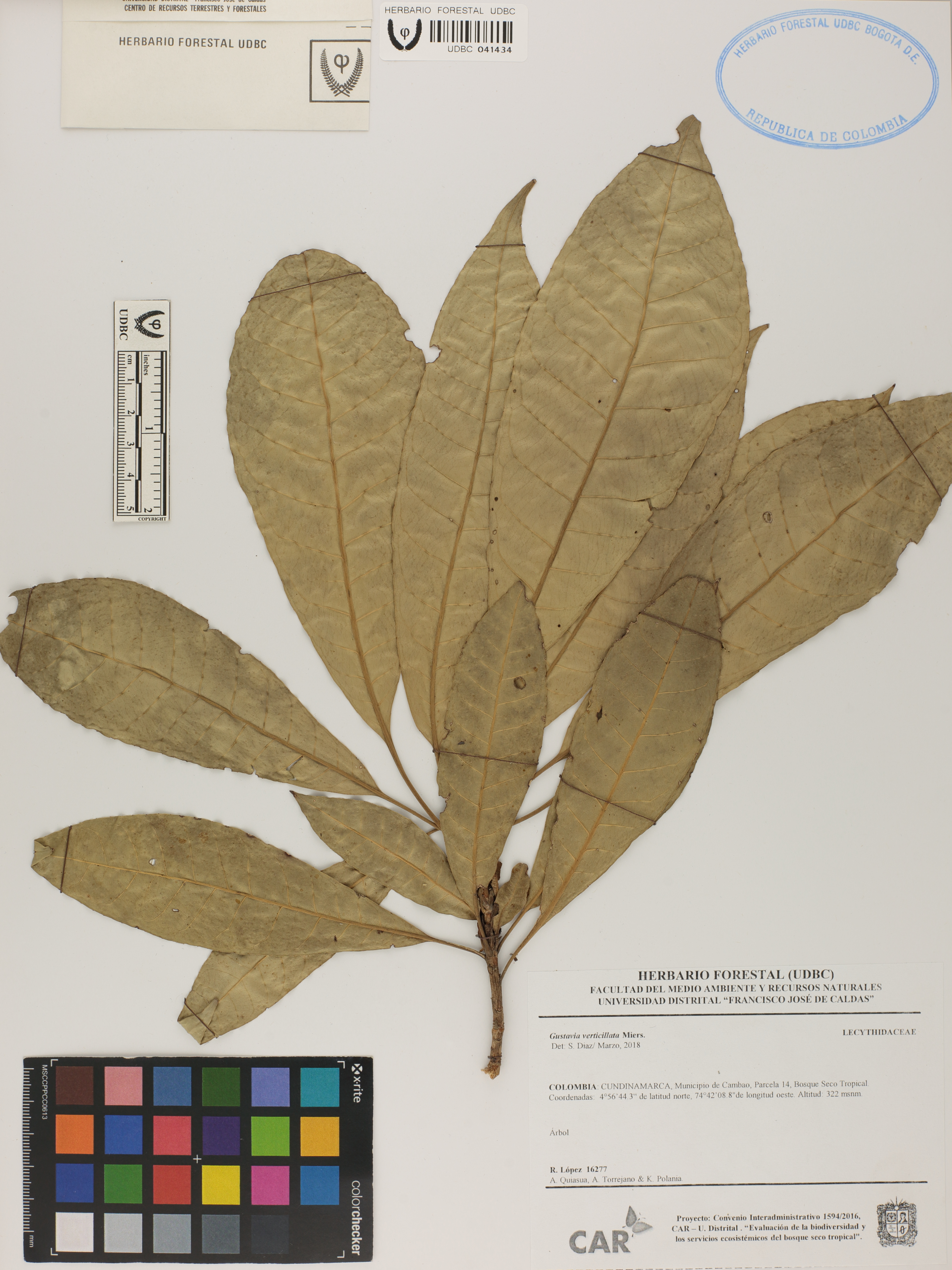 Fotografía del ejemplar López, R. 16277, determinado como Gustavia verticillata en el año 2018