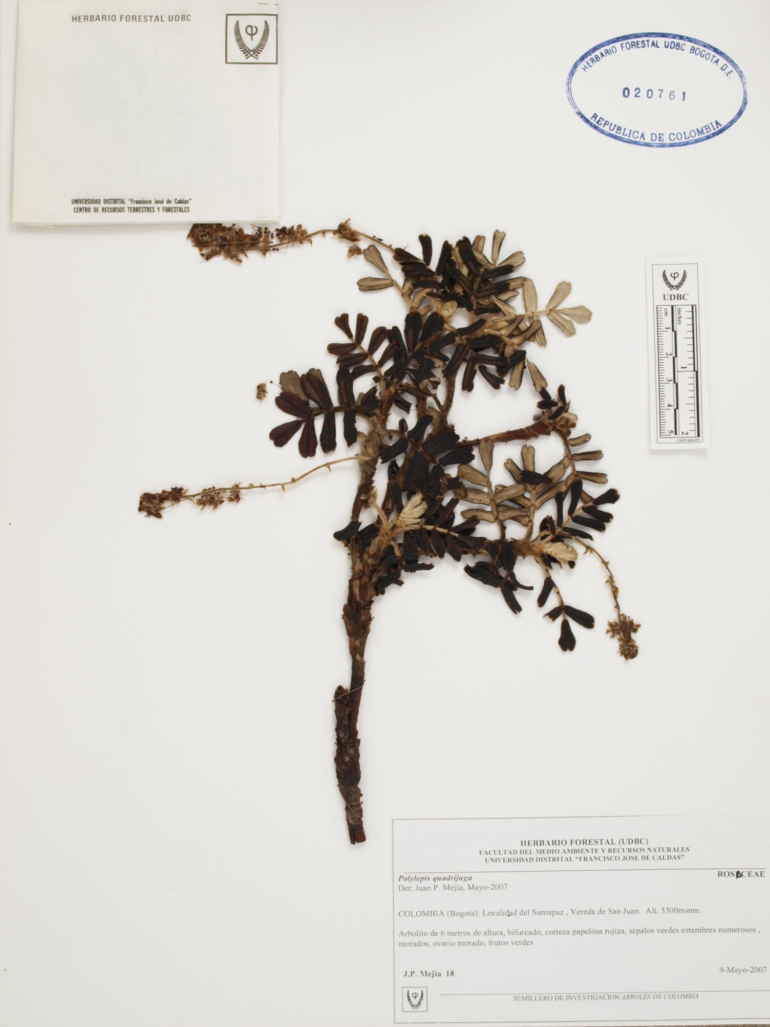 | dc.description | Fotografía del ejemplar Mejía, J. 18, determinado como Polylepis quadrijuga en el año 2007 | |