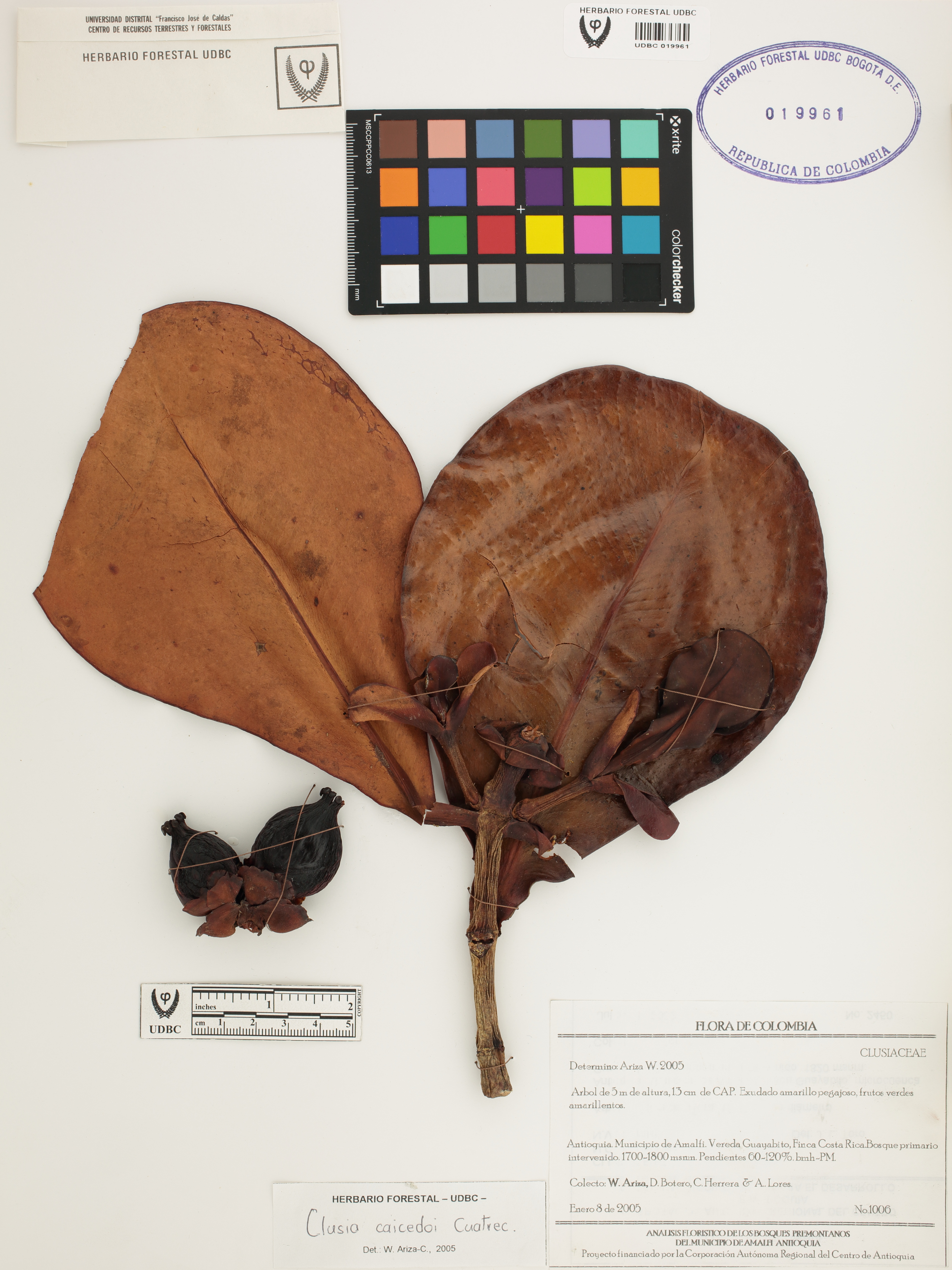 Fotografía del ejemplar Ariza, W. 1006, determinado como Clusia caicedoi en el año 2005