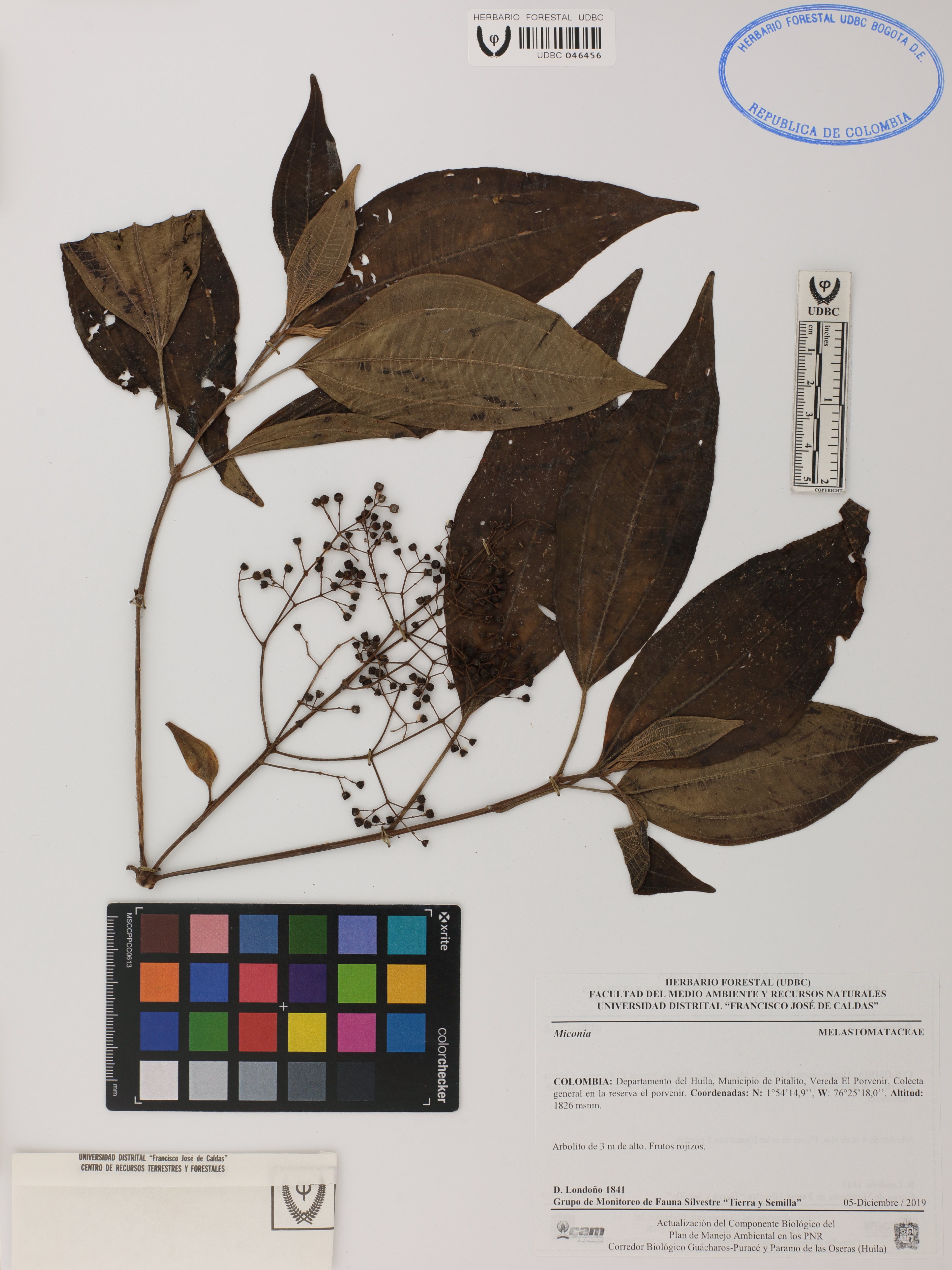 Fotografía del ejemplar Londoño, D. 1841, determinado como Miconia sp.