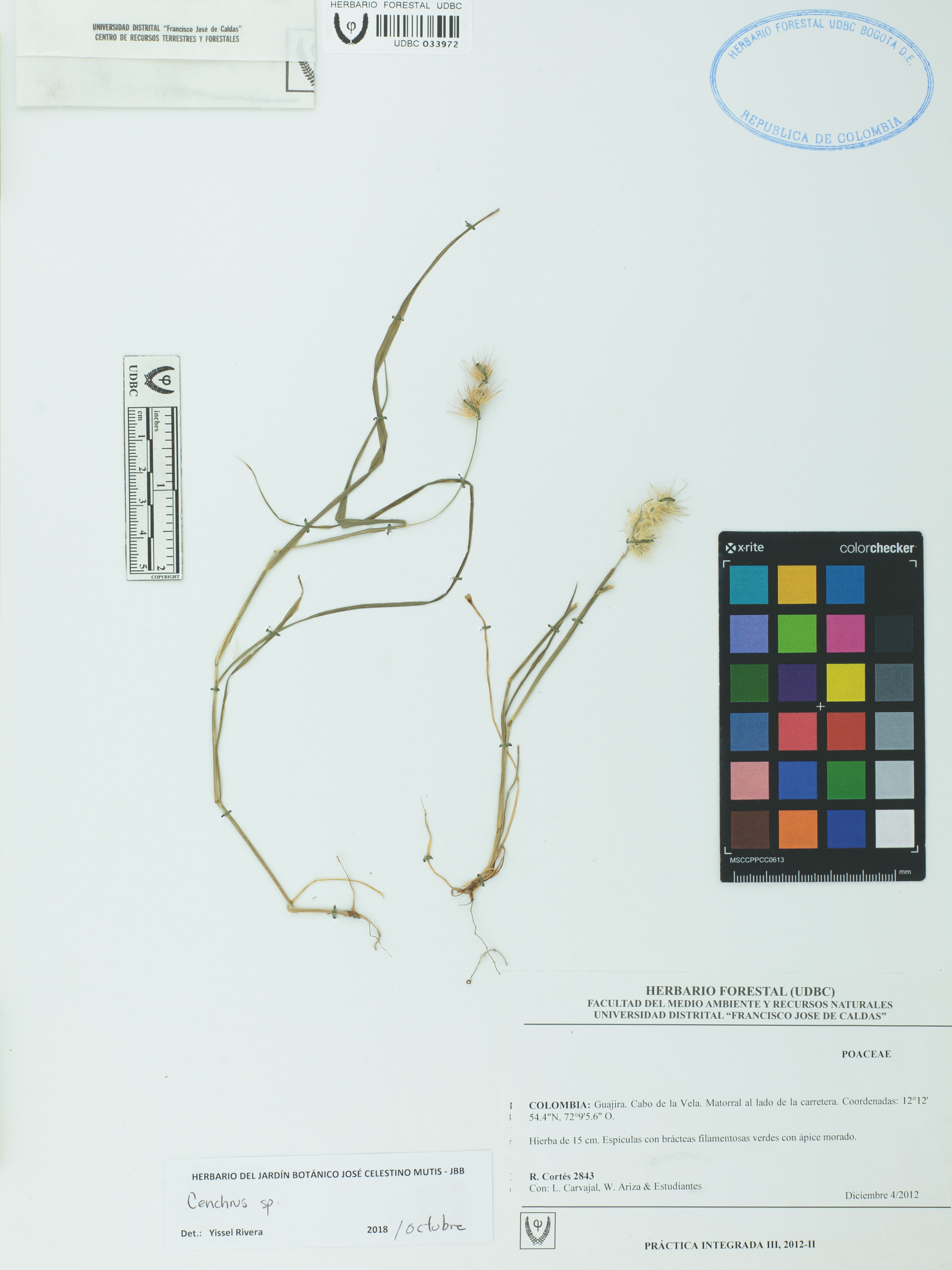 Fotografía del ejemplar Cortés, R. 2843, determinado como Cenchrus sp. en el año 2018