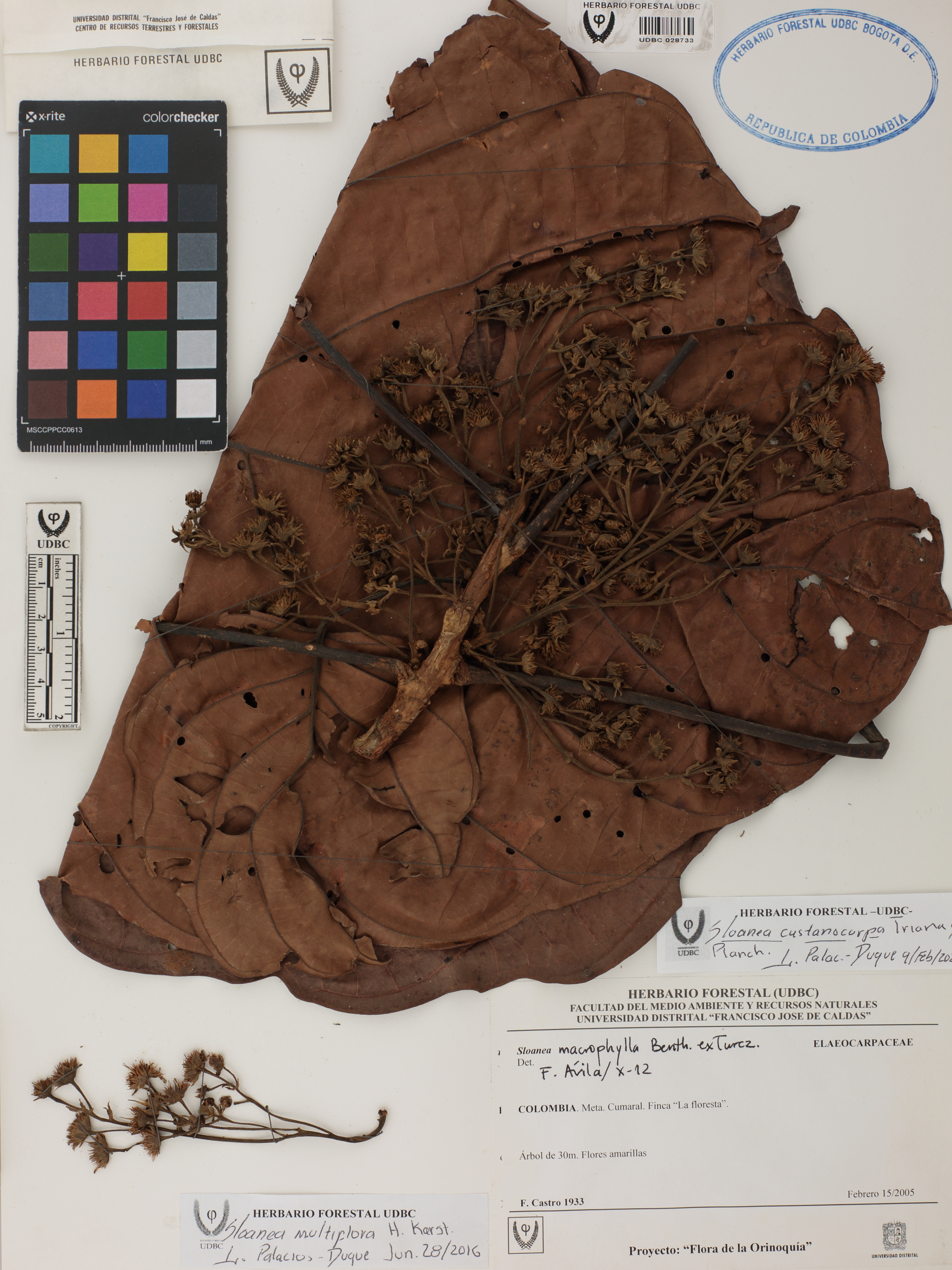 Fotografía del ejemplar Castro, F. 1933, determinado como Sloanea castanocarpa en el año 2023