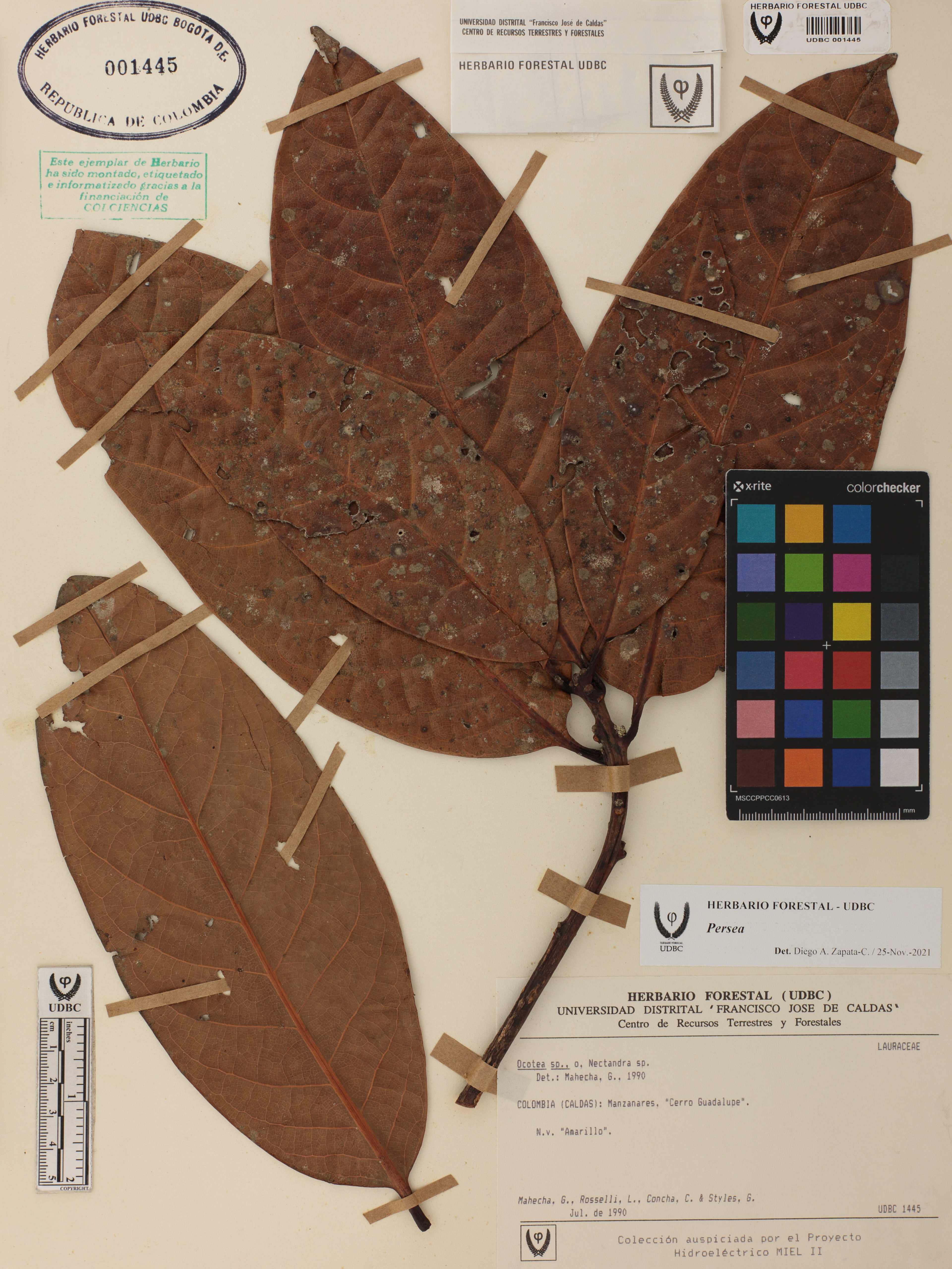 Fotografía del ejemplar Mahecha, G., determinado como Persea sp. en el año 2021
