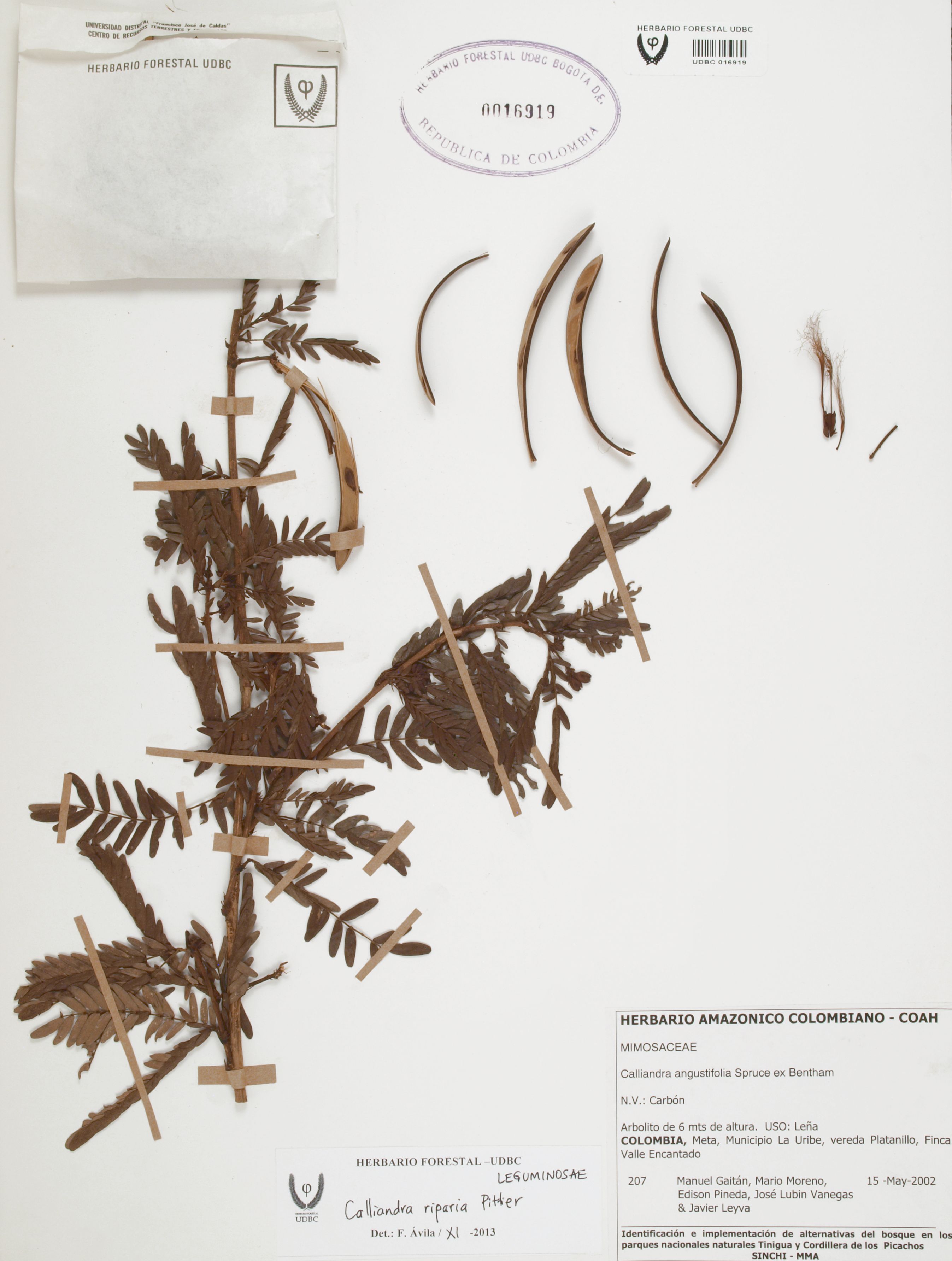 Fotografía del ejemplar Gaitán, M. 207, determinado como Calliandra riparia en el año 2013