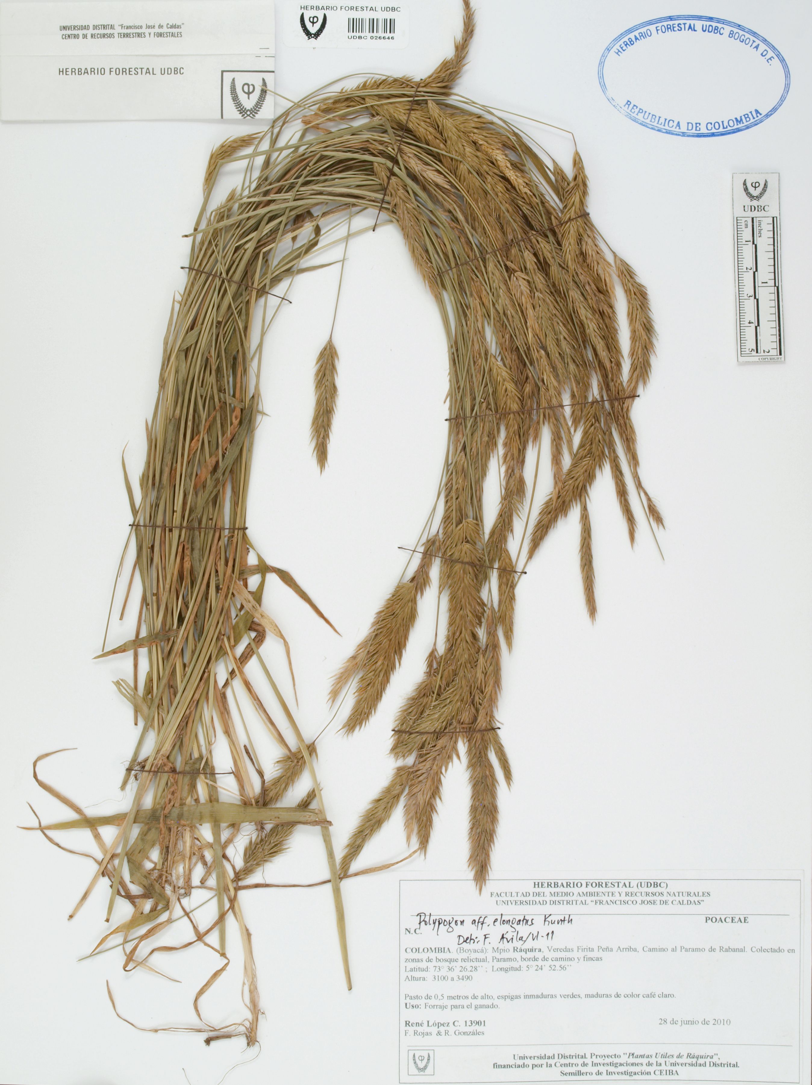 Fotografía del ejemplar López, R. 13901, determinado como Polypogon elongatus en el año 2011