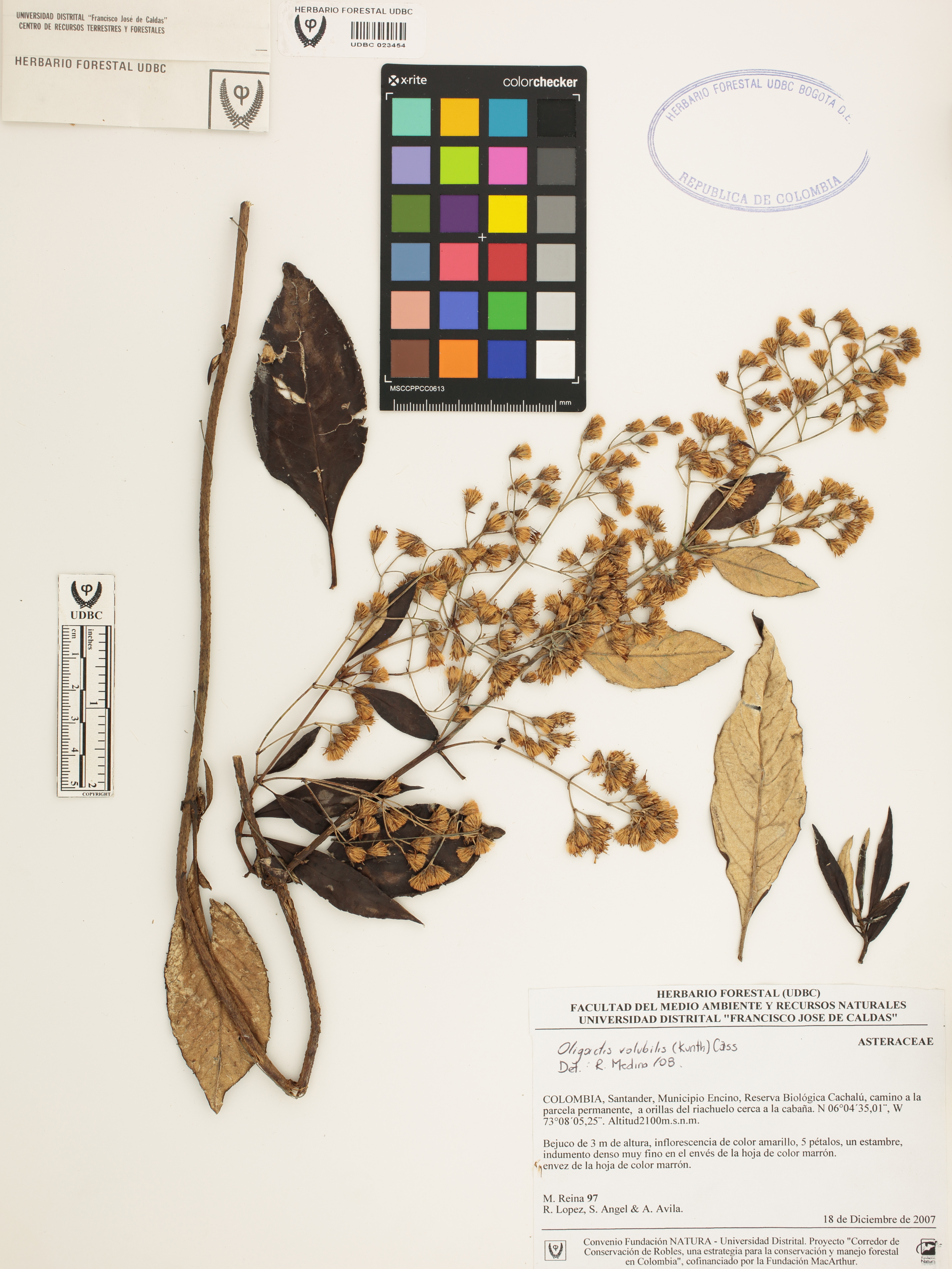 Fotografía del ejemplar Reina, M. 97, determinado como Oligactis volubilis en el año 2008