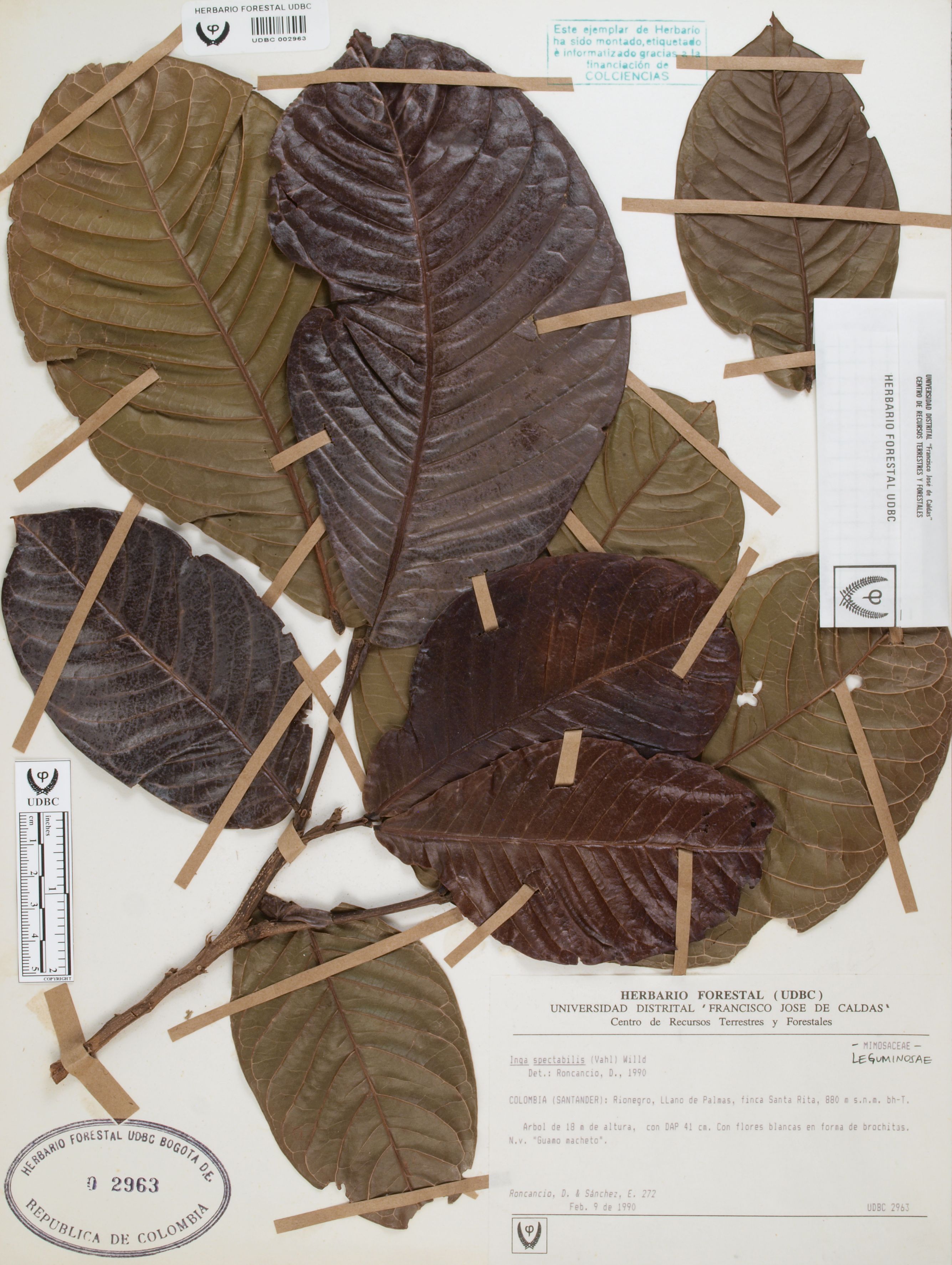 Fotografía del ejemplar Roncancio, D. 272, determinado como Inga spectabilis en el año 1990