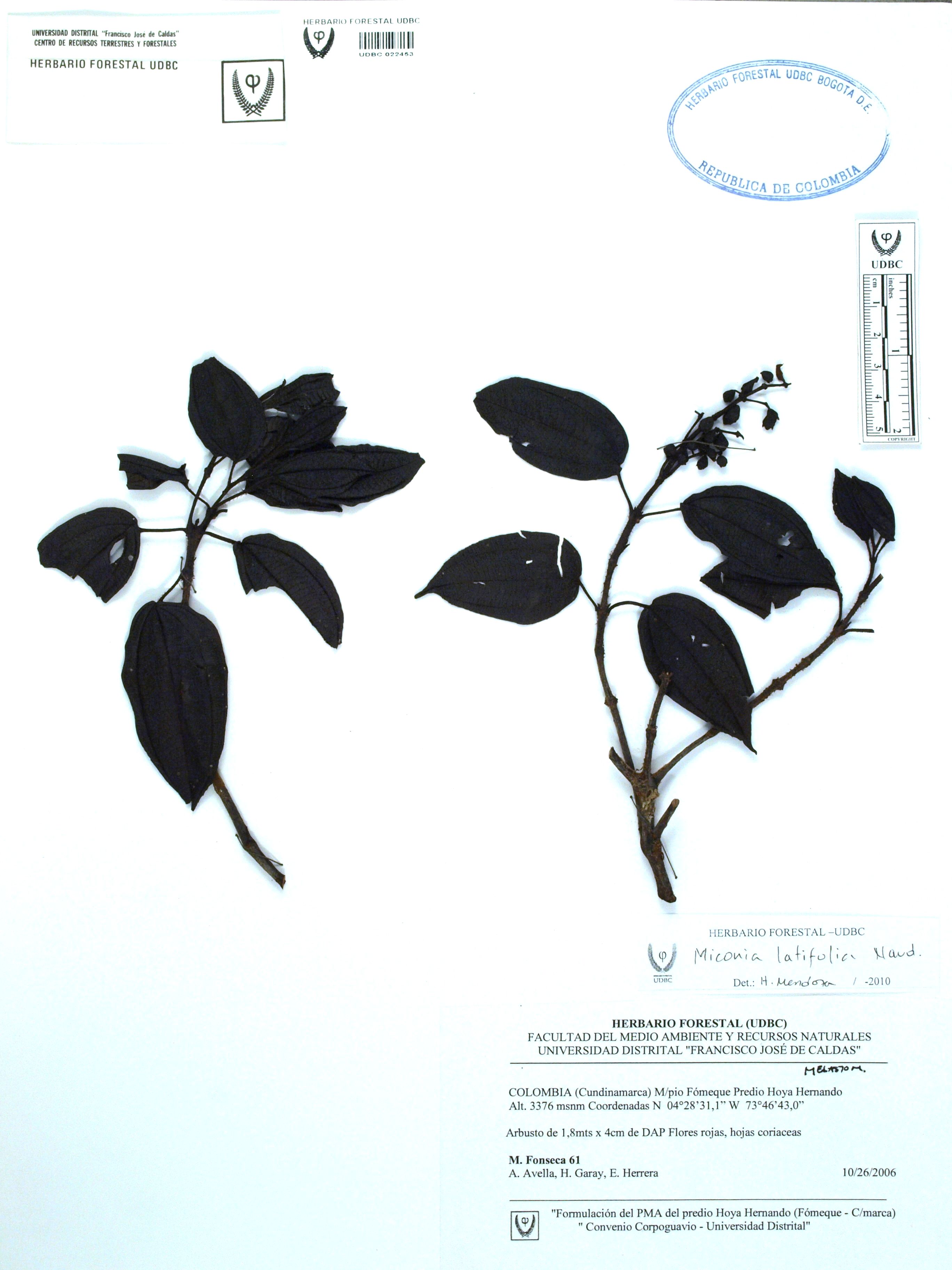 Fotografía del ejemplar Fonseca, M. 61, determinado como Miconia latifolia en el año 2010