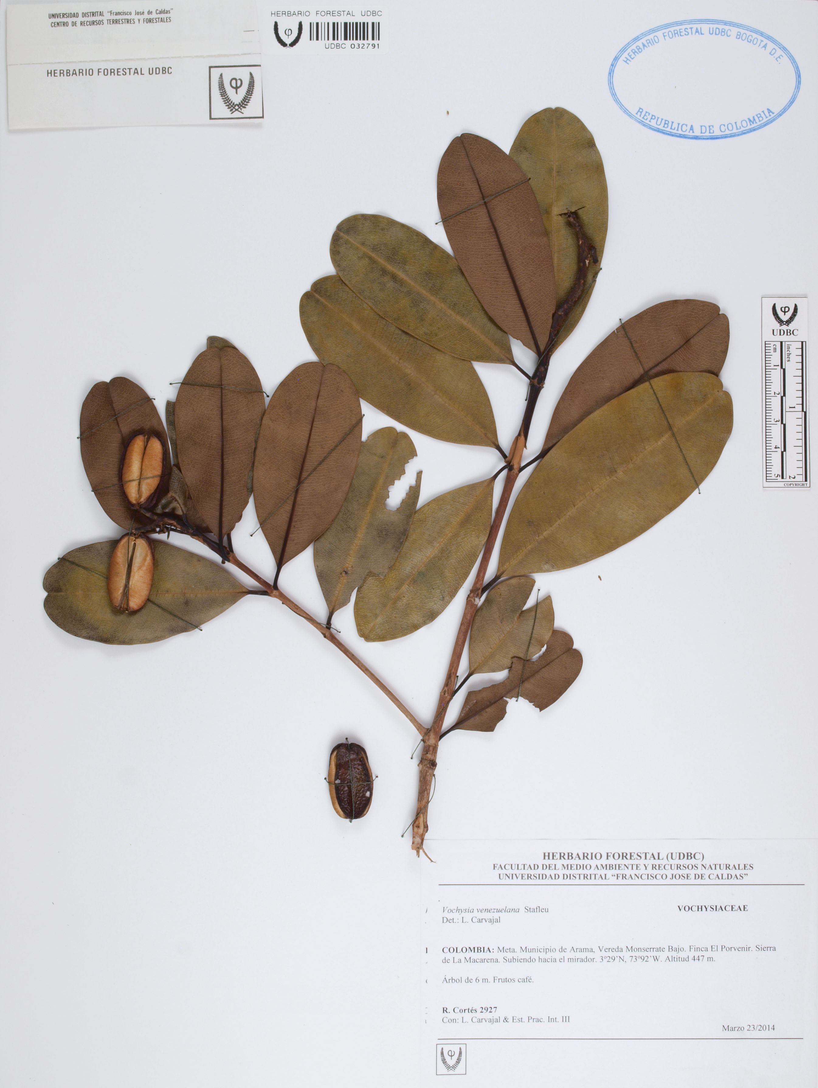 Fotografía del ejemplar Cortés, R. 2927, determinado como Vochysia venezuelana