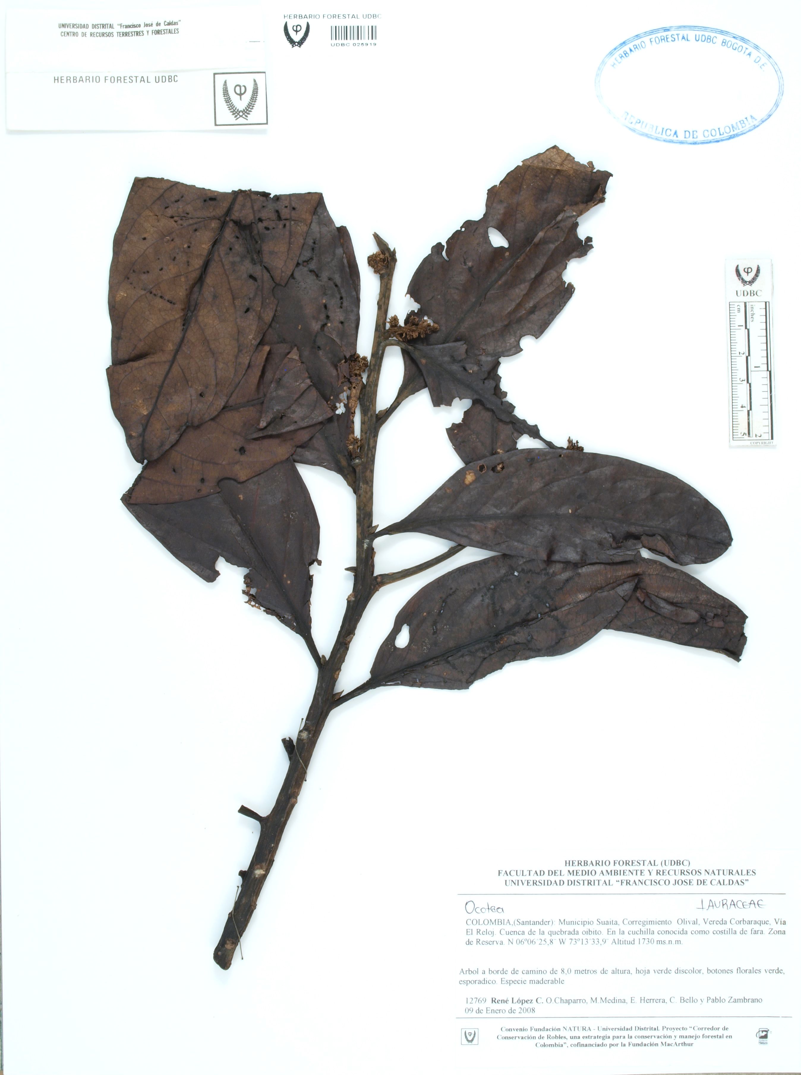 Fotografía del ejemplar López, R. 12769, determinado como Ocotea sp.