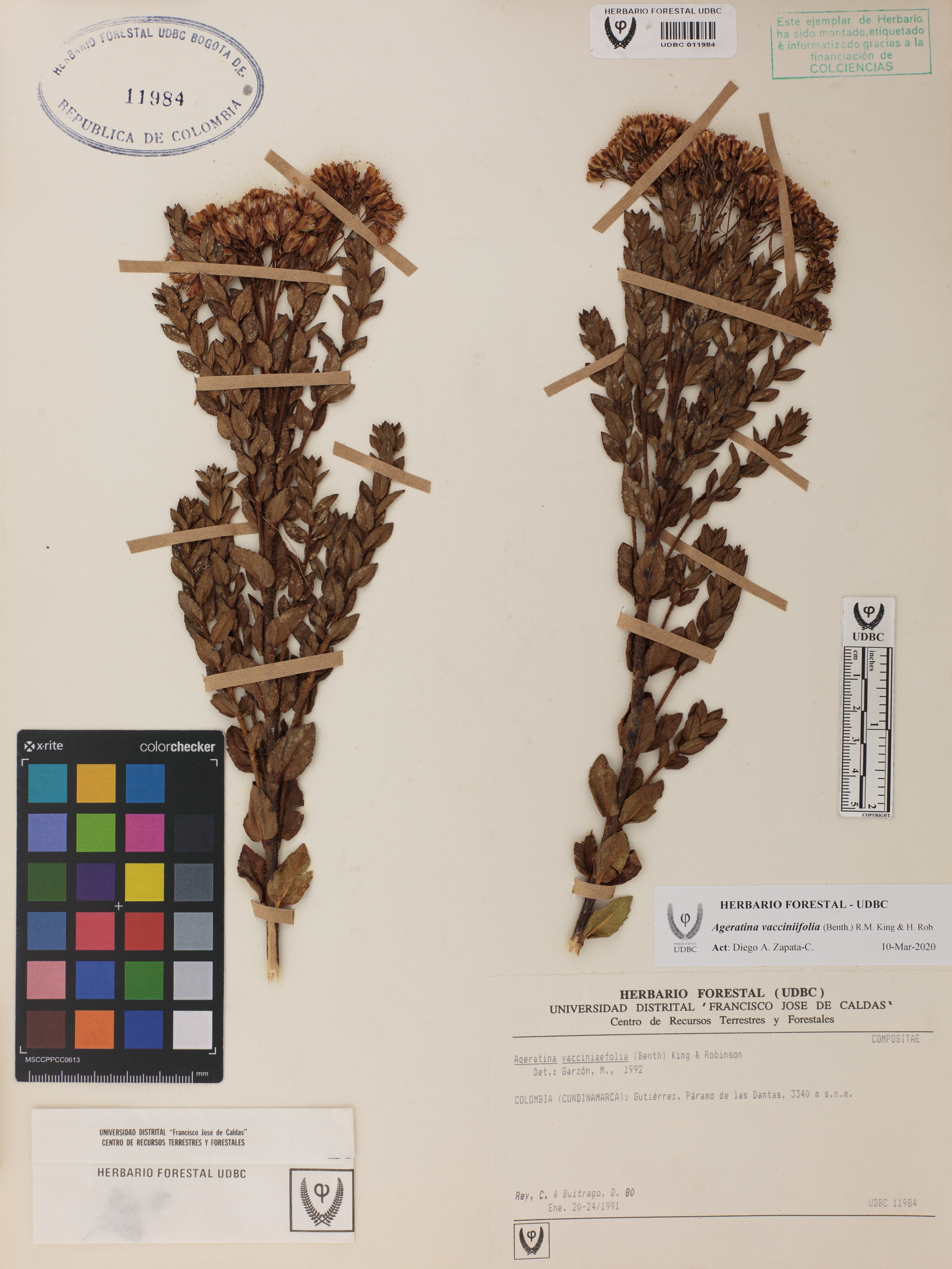 Fotografía del ejemplar Rey, C. 80, determinado como Ageratina vacciniifolia en el año 1992
