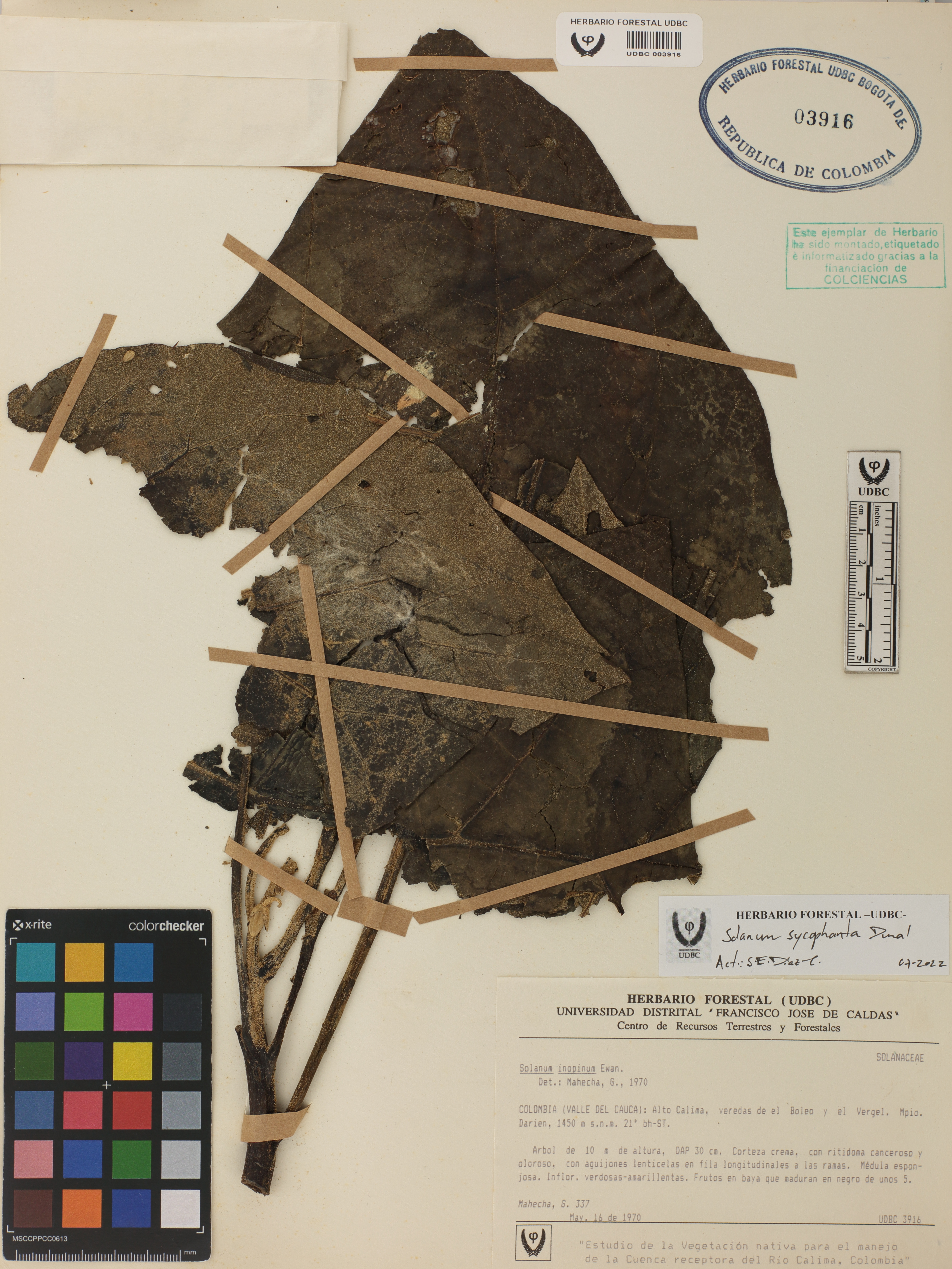 Fotografía del ejemplar Mahecha, G. 337, determinado como Solanum sycophanta en el año 1970