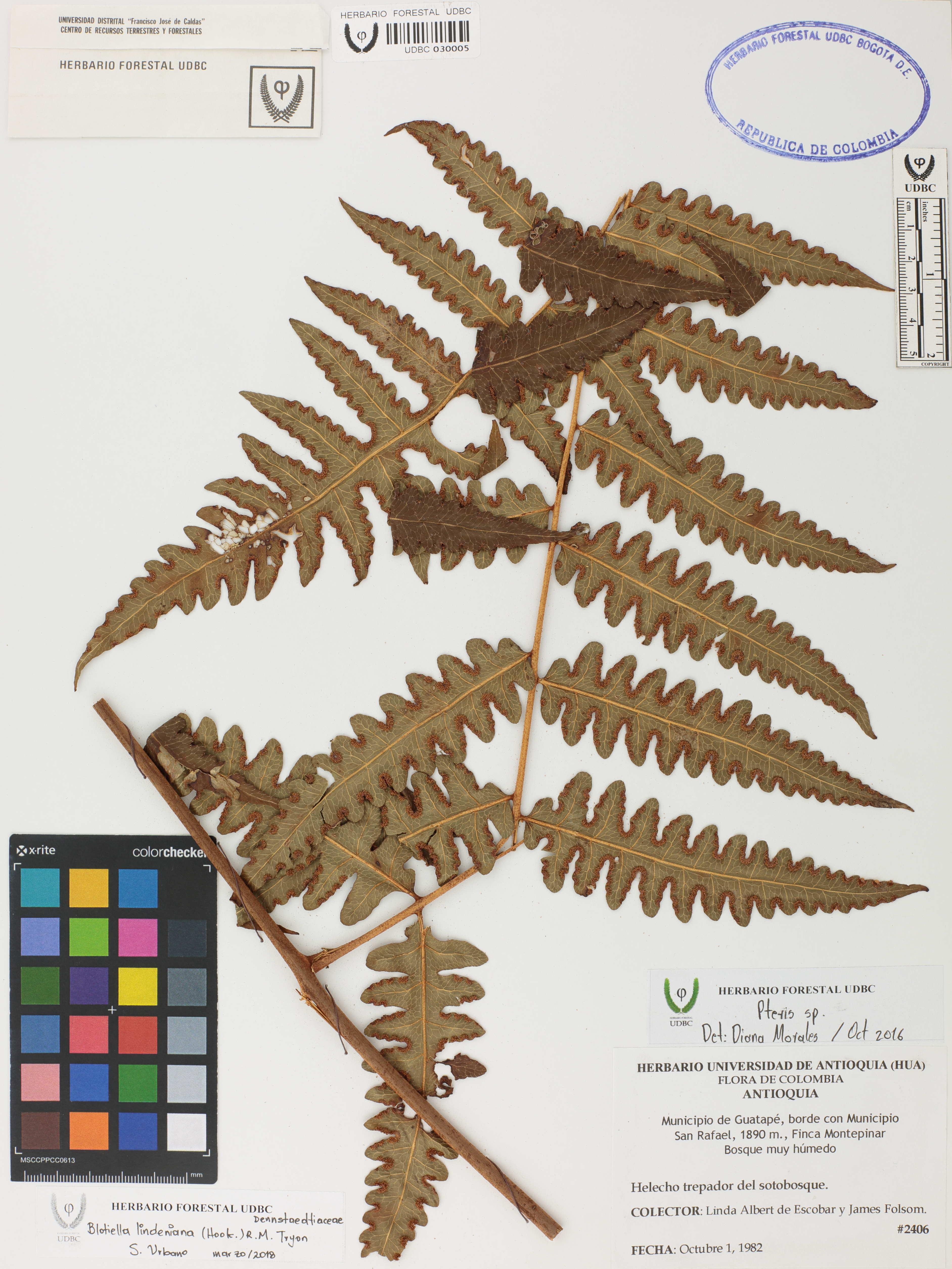 Fotografía del ejemplar Albert de E., L. 2406, determinado como Blotiella lindeniana en el año 2018