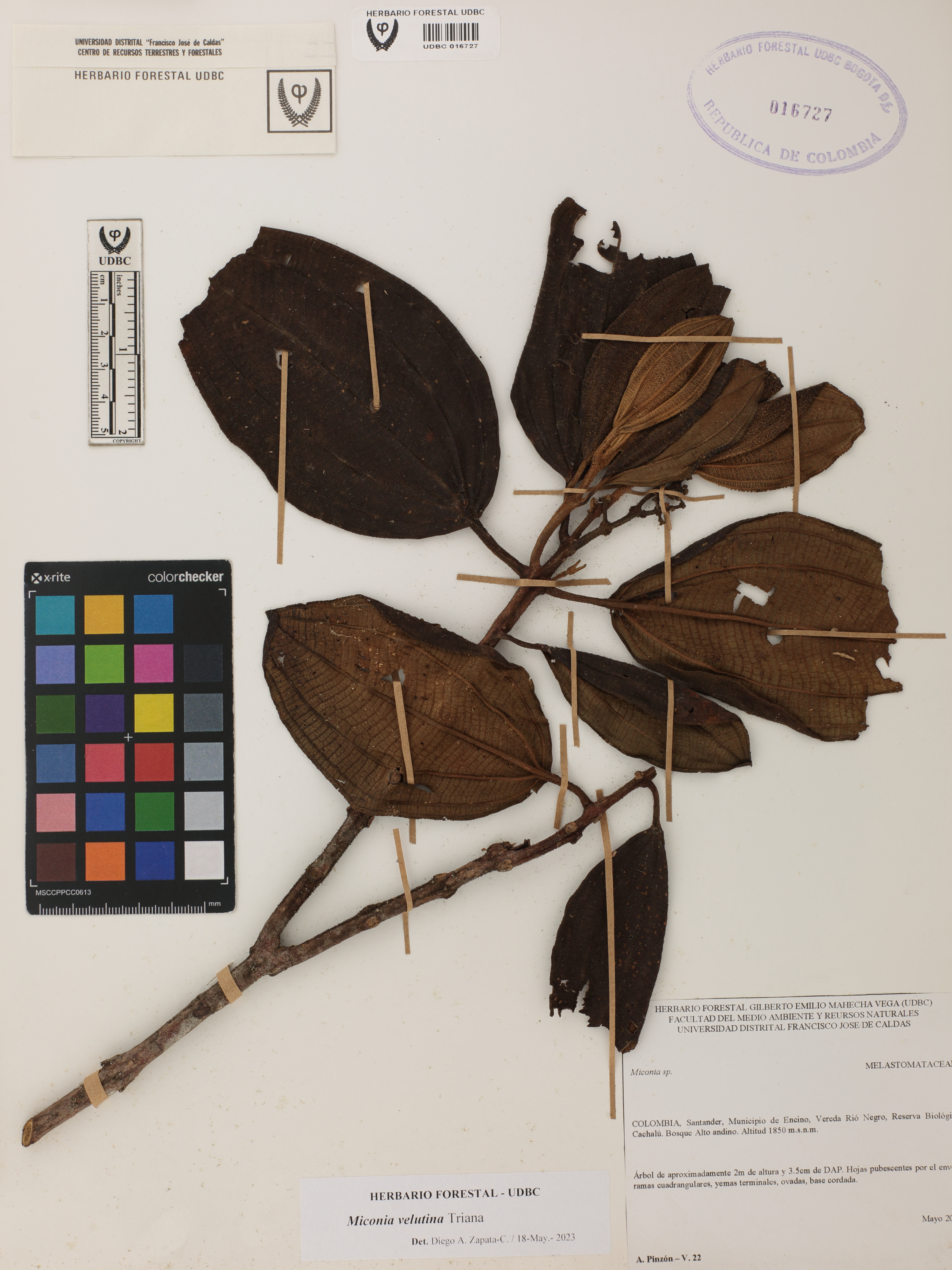 Fotografía del ejemplar Pinzón, A. 22, determinado como Miconia velutina en el año 2023